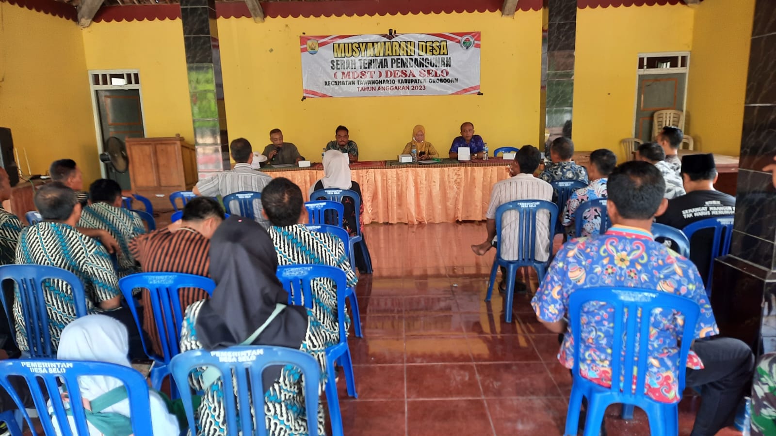 Selasa, 9 Januari 2024. Pelaksanaan Kegiatan Musyawarah Desa Serah Terima Pembangunan (MDST) dan Musyawarah Desa Khusus Penetapan Keluarga Penerima Manfaat (KPM) Bantuan Langsung Tunai Dana Desa (BLT-DD) Tahun Anggaran 2024 di Pendopo Balai Desa Selo