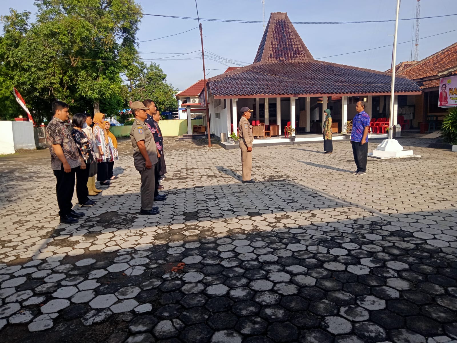 Kamis 22 Februari 2024. Apel pagi Karyawan Karyawati Sekretariat dan Dinas Instansi Kecamatan Tawangharjo di Halaman Kantor Kecamatan Tawangharjo