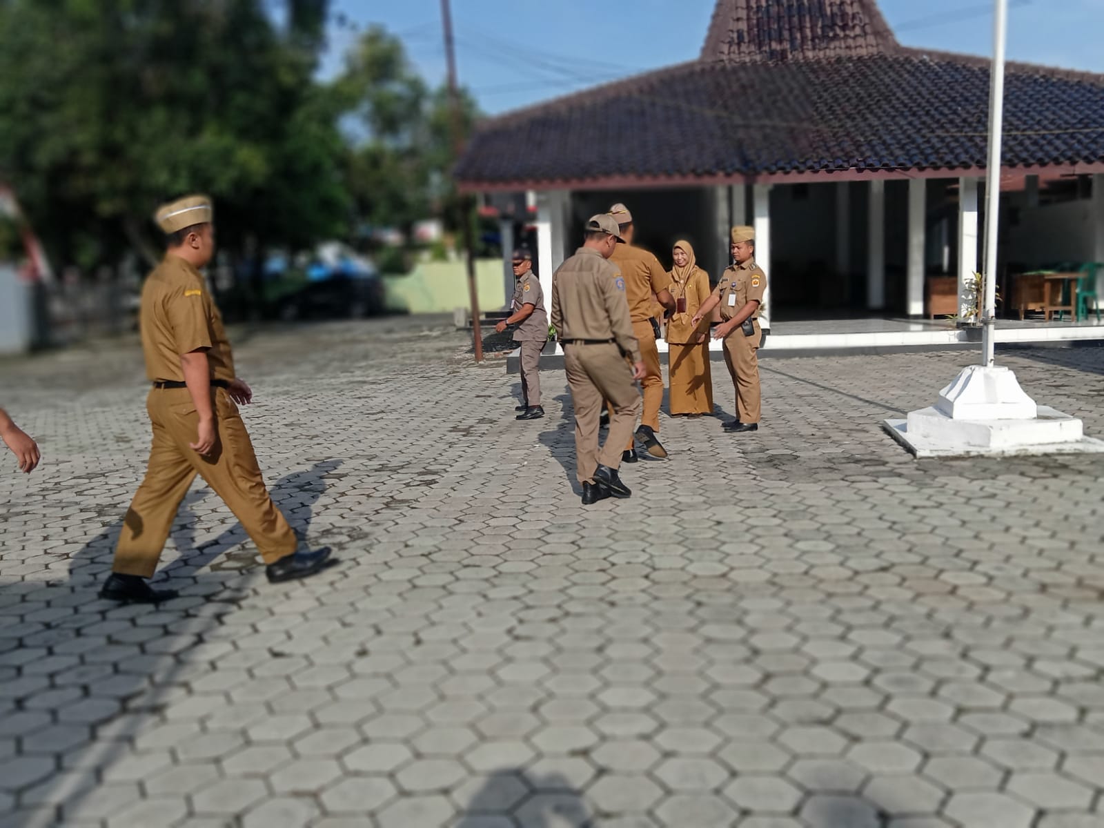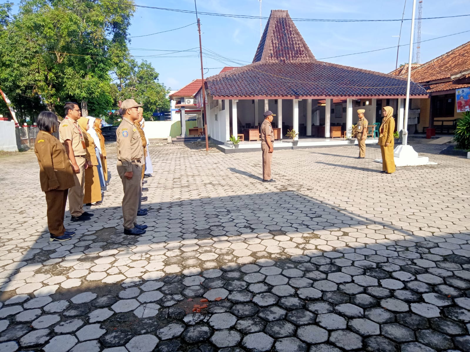 Senin 26 Februari 2024. Apel pagi Karyawan Karyawati Sekretariat dan Dinas Instansi Kecamatan Tawangharjo di Halaman Kantor Kecamatan Tawangharjo