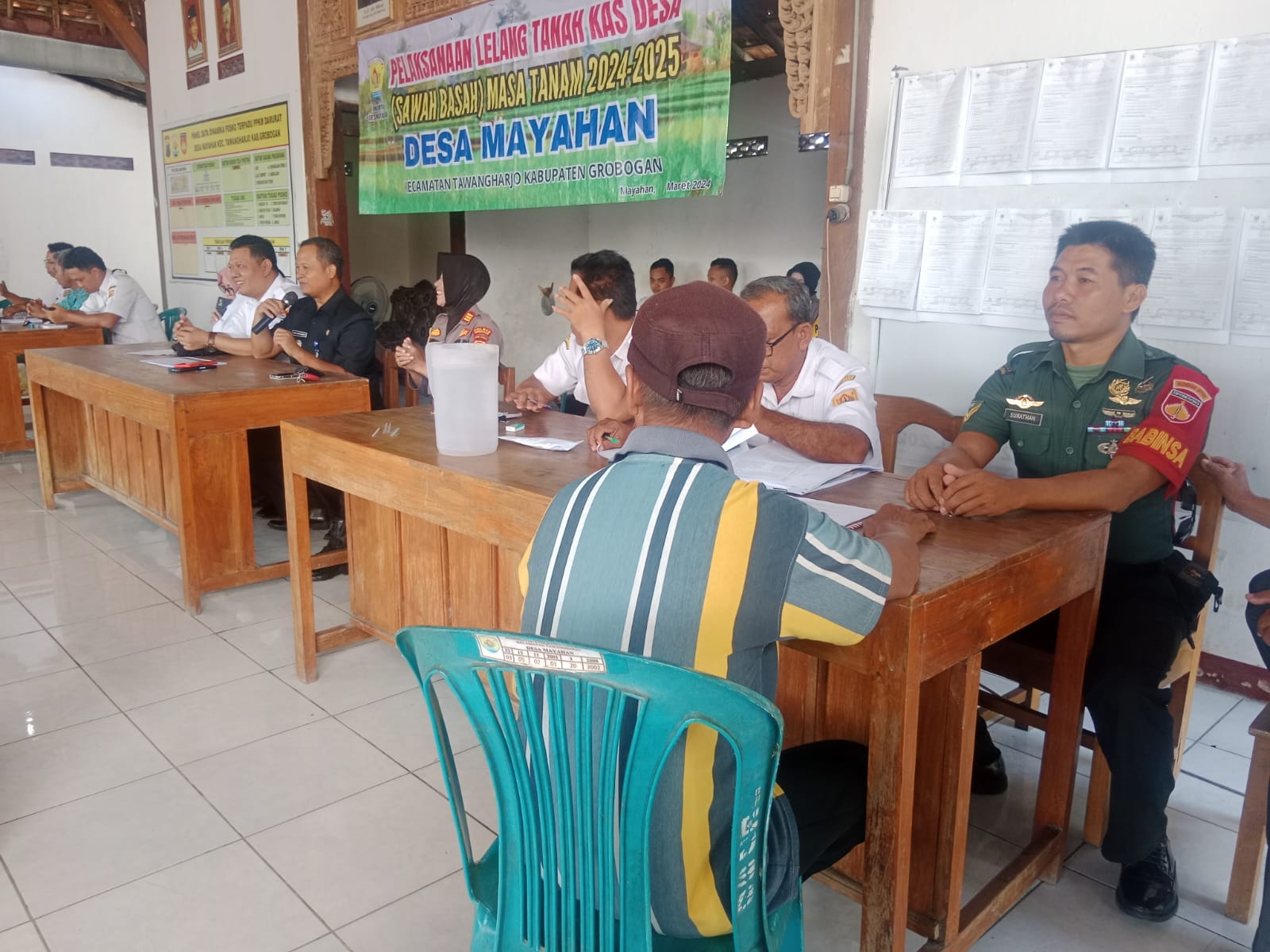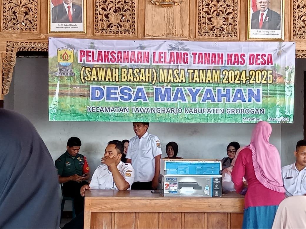 Rabu 20 Maret 2024. Pemantauan pelaksanaan kegiatan Lelang Tanah Kas Desa (Sawah Basah) Masa Tanam 2024-2025 Desa Mayahan di Pendopo Kantor Balai Desa Mayahan