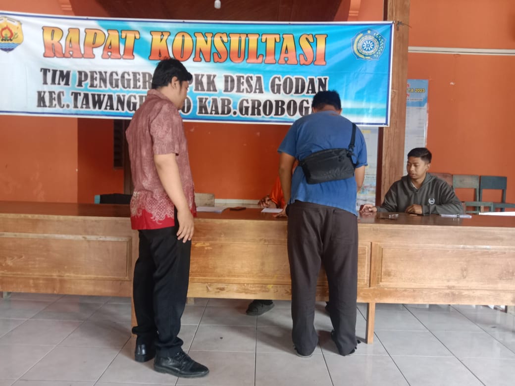 Jum'at 5 April 2024. Pemantauan pelaksanaan kegiatan penyaluran BLT DD Bulan April 2024 oleh petugas BPR BKK Purwodadi cabang Tawangharjo di Pendopo Kantor Balai Desa Godan