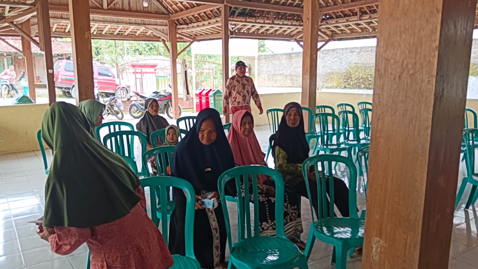 Jum'at 5 April 2024. Pemantauan pelaksanaan kegiatan penyaluran BLT DD Bulan April 2024 oleh petugas BPR BKK Purwodadi cabang Tawangharjo di Pendopo Kantor Balai Desa Kemadohbatur