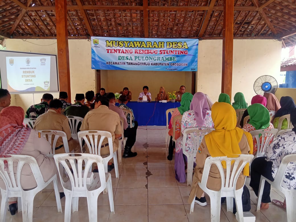 Senin, 24 Juni 2024. Pelaksanaan Musyawarah Desa tentang Rembug Stunting di Pendopo Kantor Balai Desa Pulongrambe Details Published: Thursday, 04 July 2024 21:11 Written by admin tawangharjo Prev Next