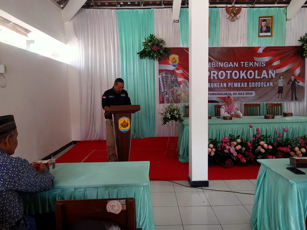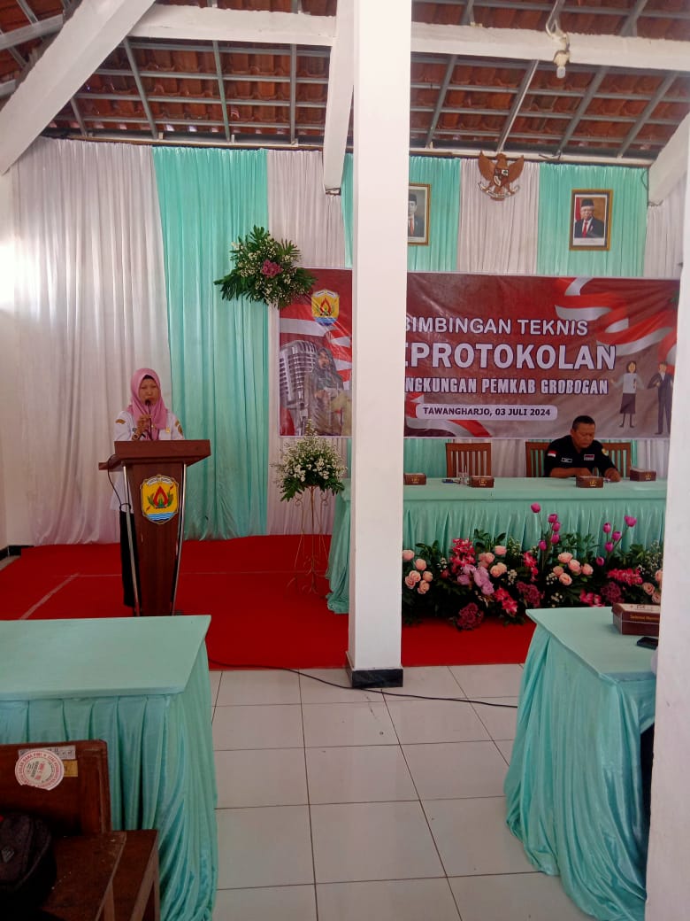 Rabu, 3 Juli 2024. Kegiatan Bimbingan Teknis Keprotokolan di Lingkungan Pemerintah Kabupaten Grobogan di Pendopo Kantor Kecamatan Tawangharjo