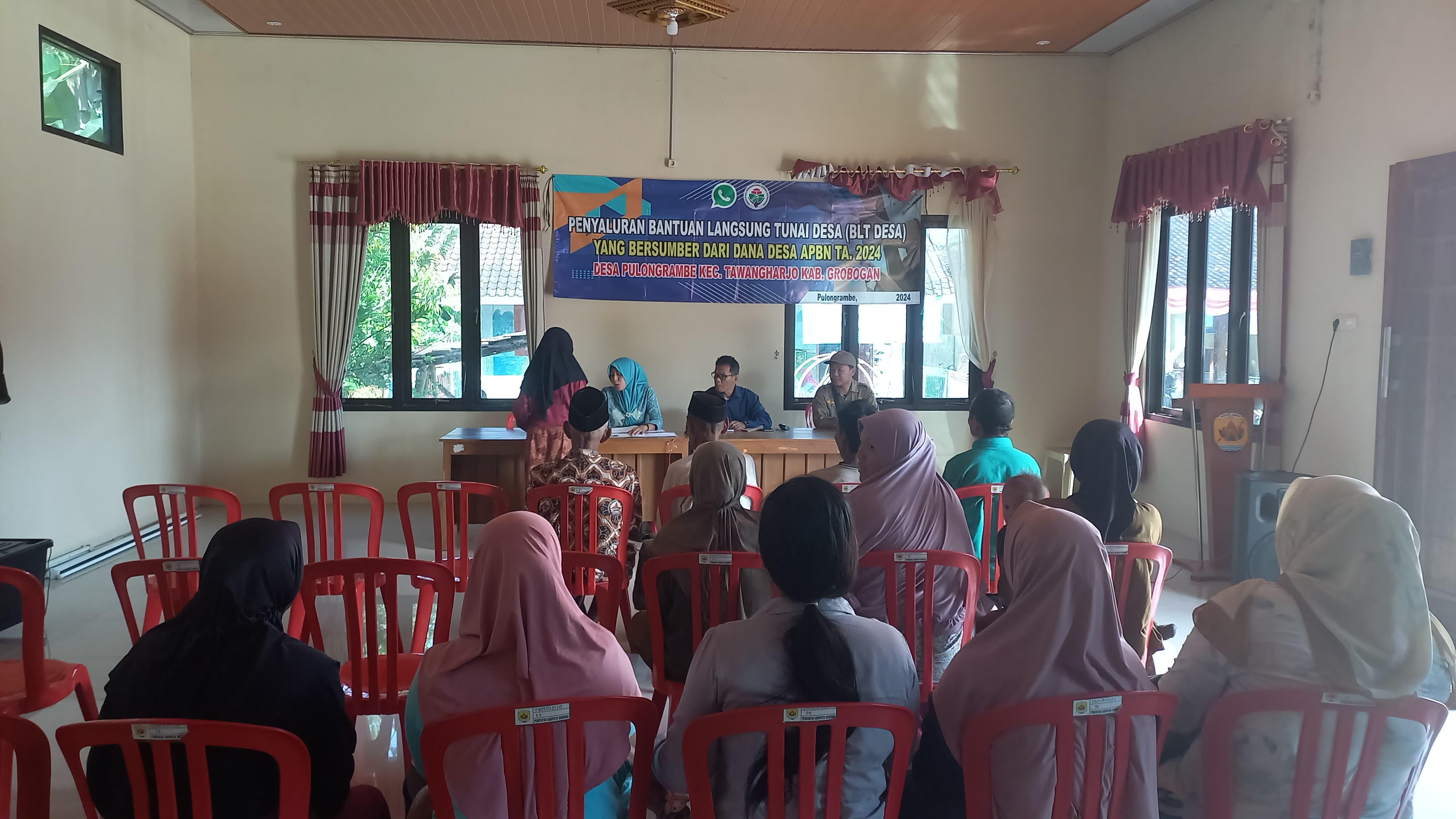 Selasa, 6 Agustus 2024. Pemantauan pelaksanaan kegiatan penyaluran BLT DD Bulan Agustus 2024 oleh Petugas BPR BKK Purwodadi (Perseroda) cabang Tawangharjo di Pendopo Kantor Balai Desa Pulongrambe