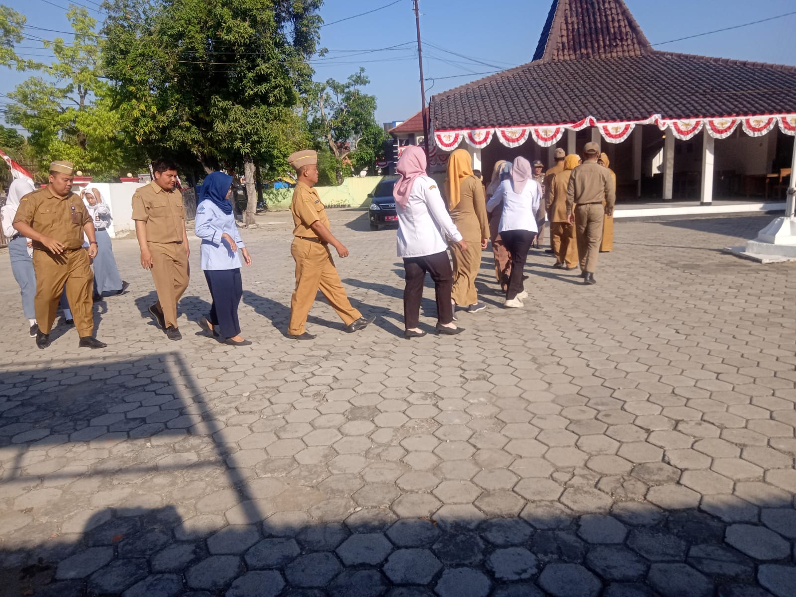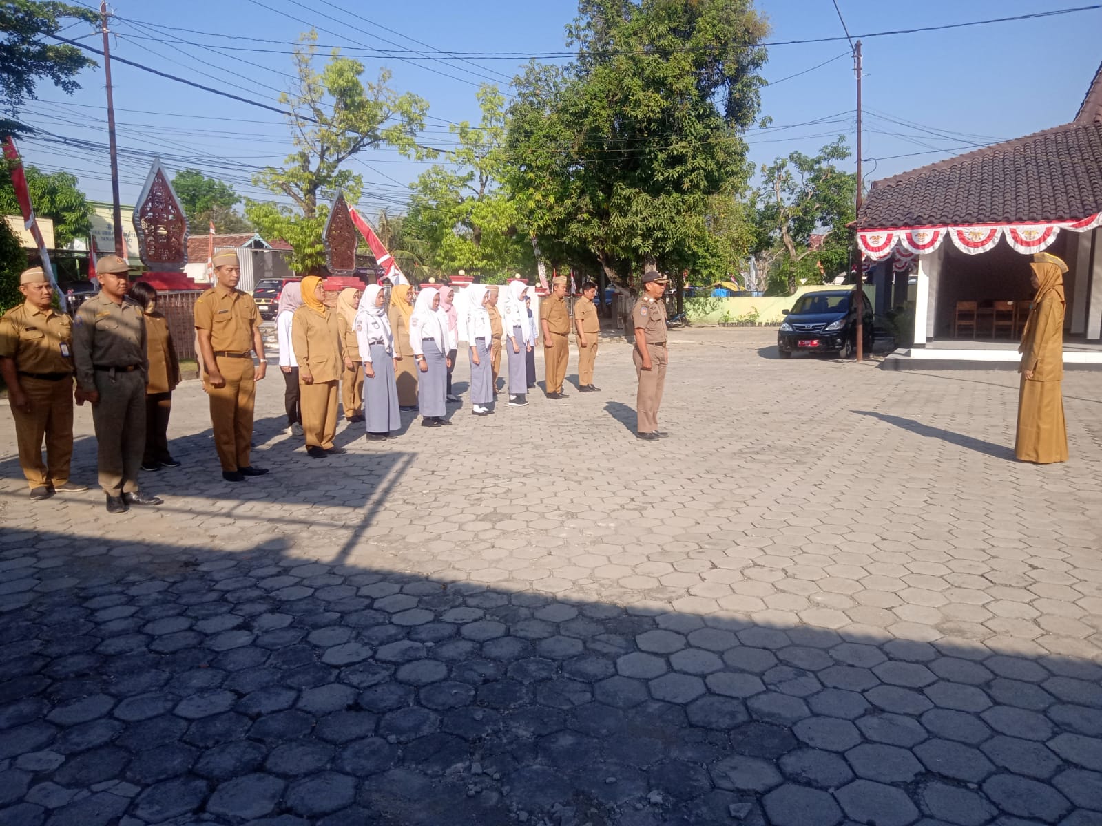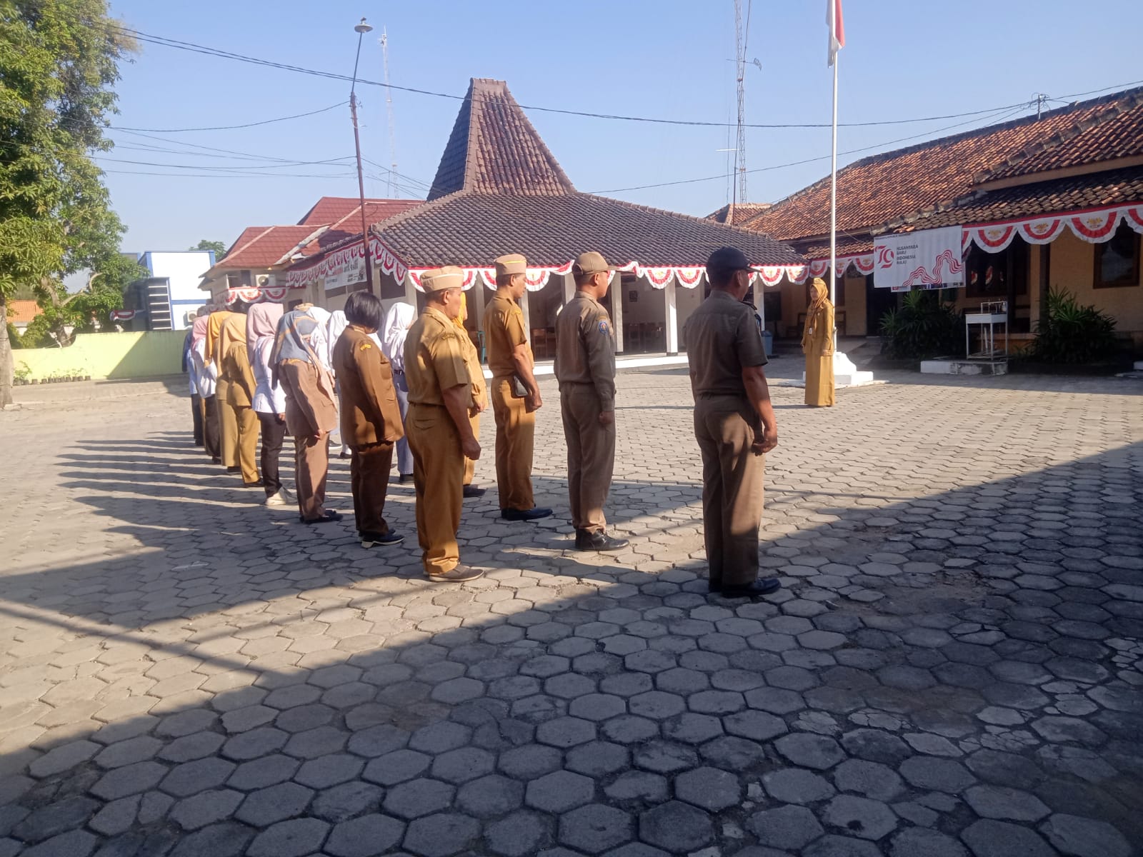 Senin, 26 Agustus 2024. Apel pagi Karyawan-Karyawati Sekretariat dan Dinas Instansi Lingkungan Kantor Kecamatan Tawangharjo yang dipimpin oleh Ibu Sekcam Sri Sugiwati, S.P., M.M. di Halaman Kantor Kecamatan Tawangharjo