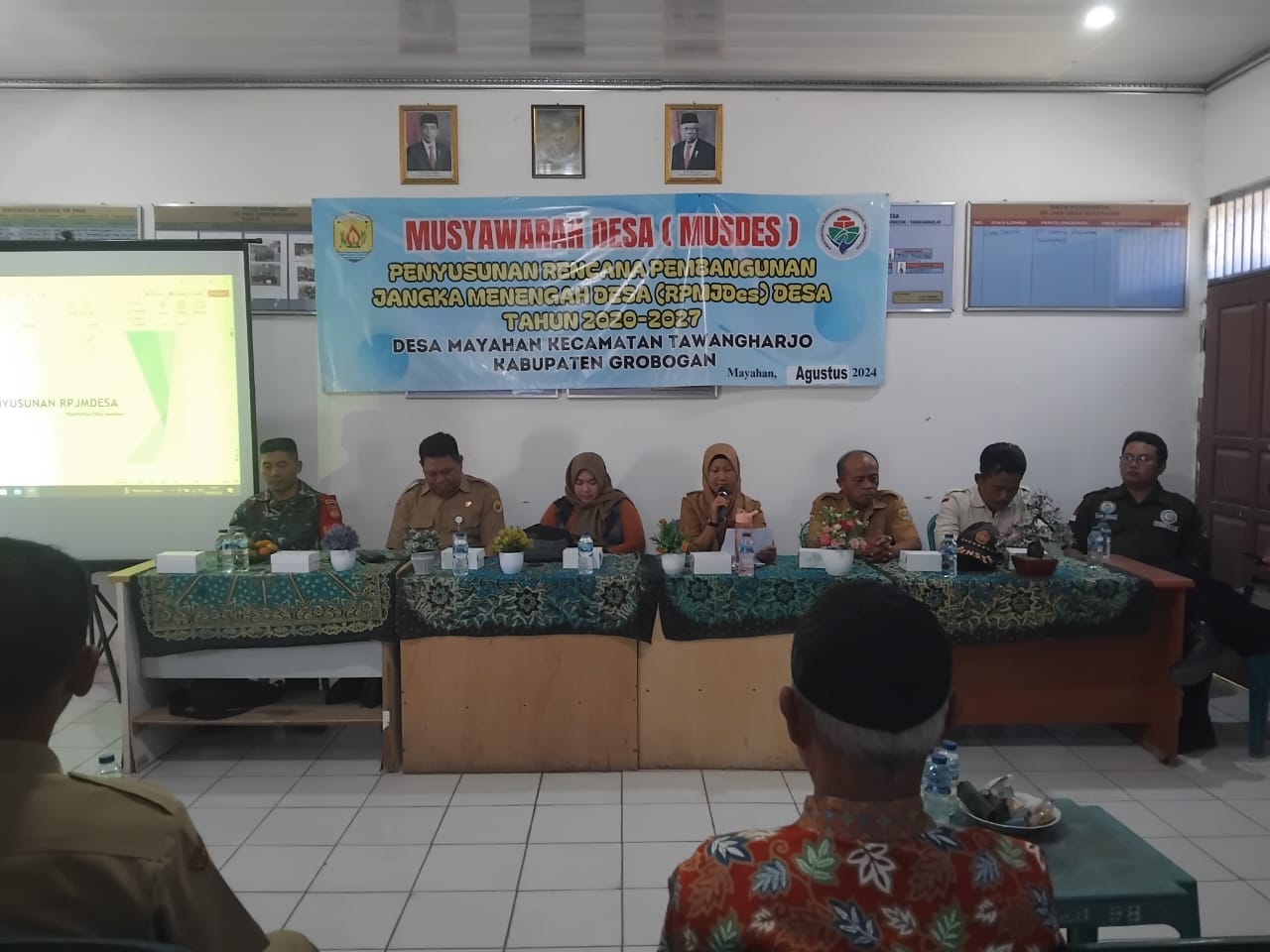Senin, 9 September 2024. Kegiatan Musyawarah Desa (MUSDES) dalam penyusunan Rencana Pembangunan Jangka Menengah Desa (RPMJDes) Tahun 2020-2027 di Kantor Balai Desa Mayahan