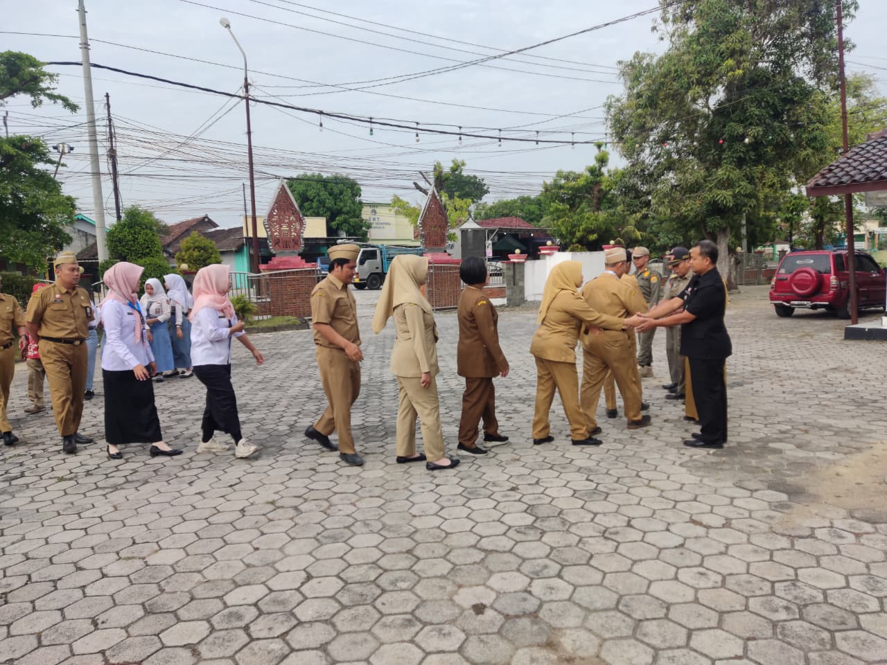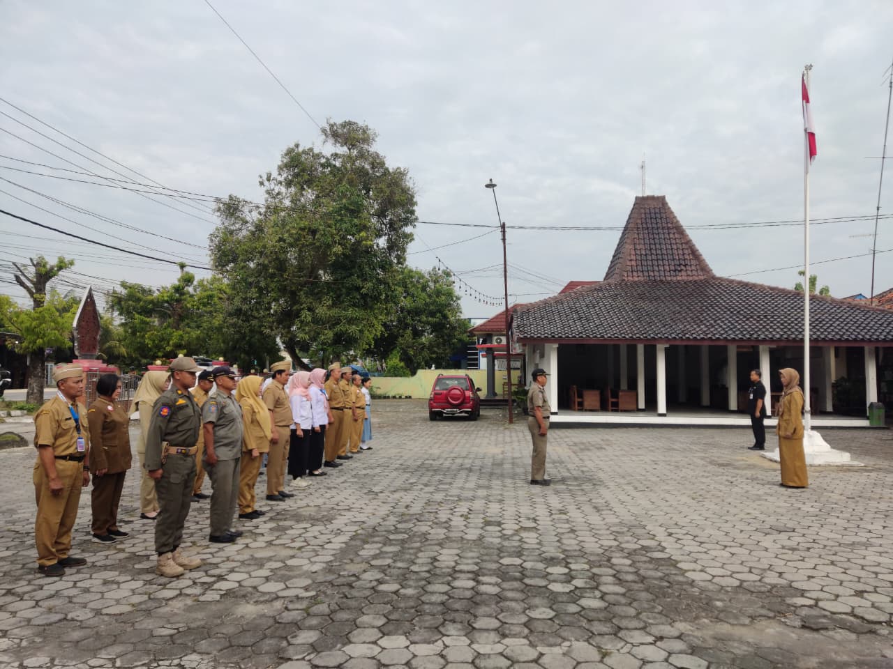 Senin, 8 September 2025. Apel pagi Karyawan-Karyawati Sekretariat dan Dinas Instansi Lingkungan Kantor Kecamatan Tawangharjo yang dipimpin oleh Ibu Sekcam Sri Sugiwati, S.P., M.M. di Halaman Kecamatan Tawangharjo