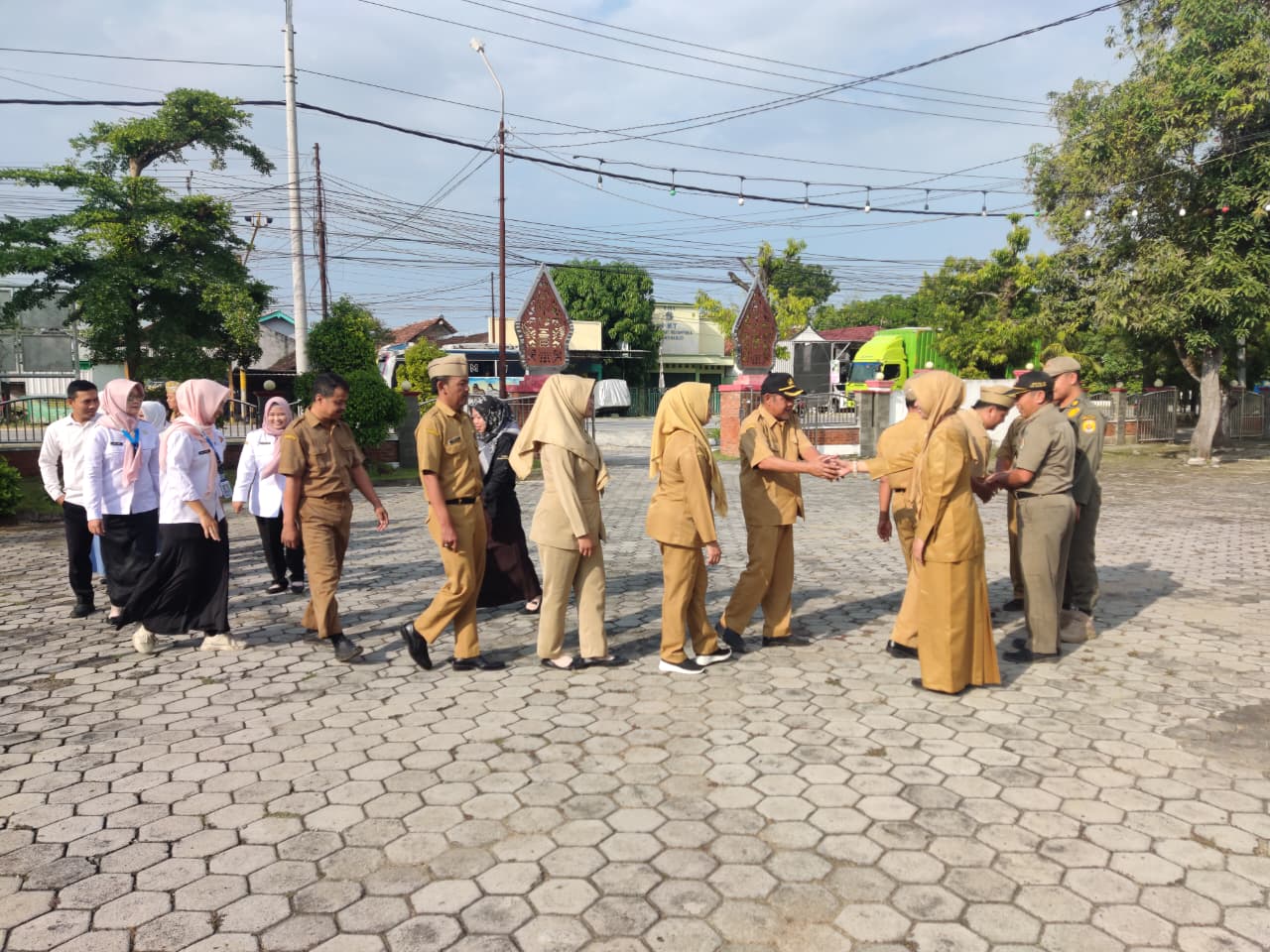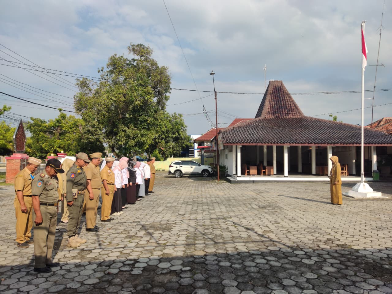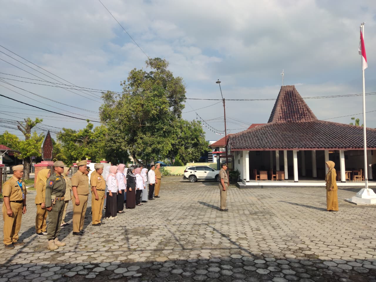 Senin, 15 September 2025. Apel pagi Karyawan-Karyawati Sekretariat dan Dinas Instansi Lingkungan Kantor Kecamatan Tawangharjo yang dipimpin oleh Ibu Sekcam Sri Sugiwati, S.P., M.M. di Halaman Kecamatan Tawangharjo