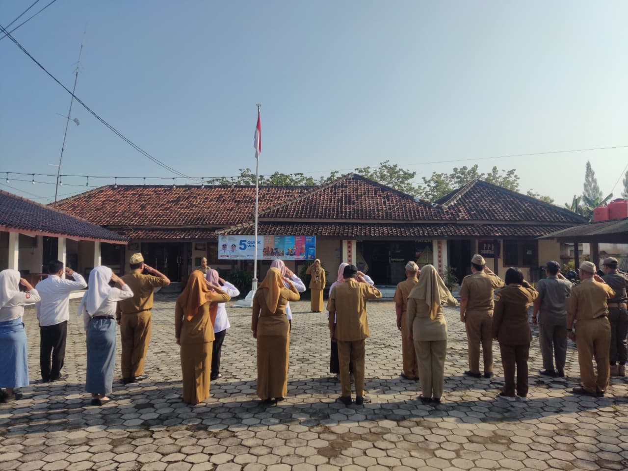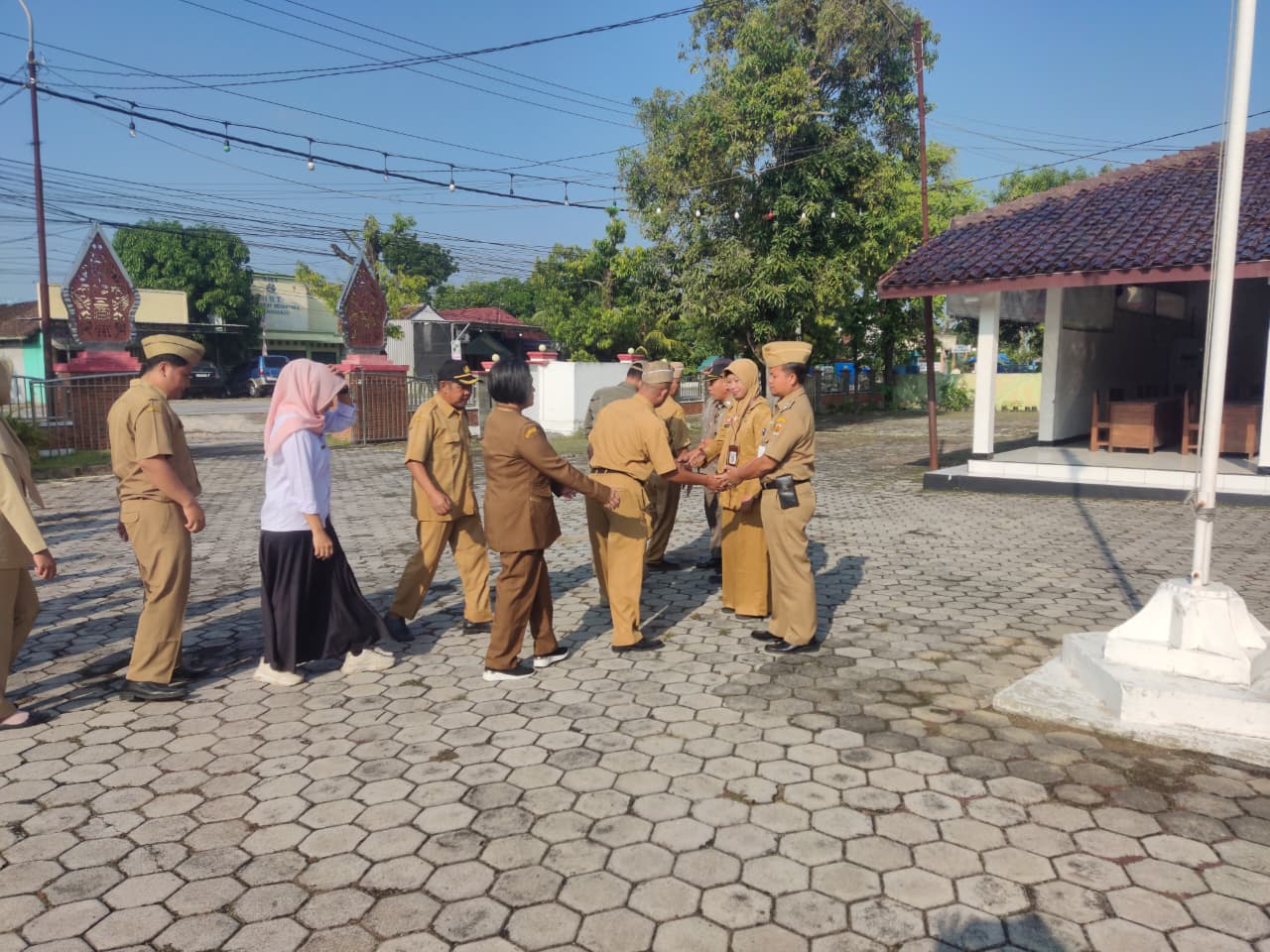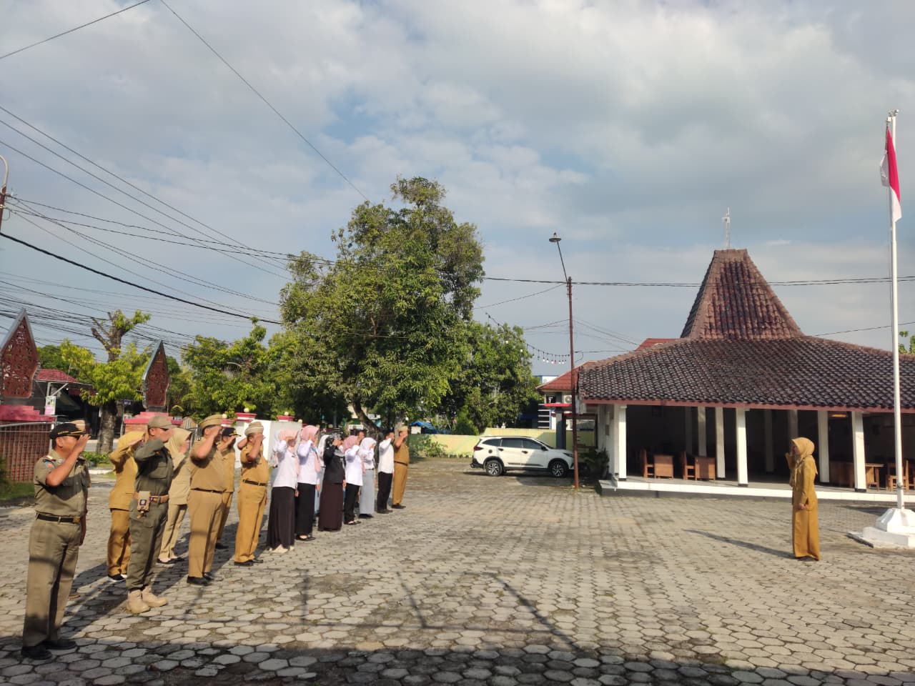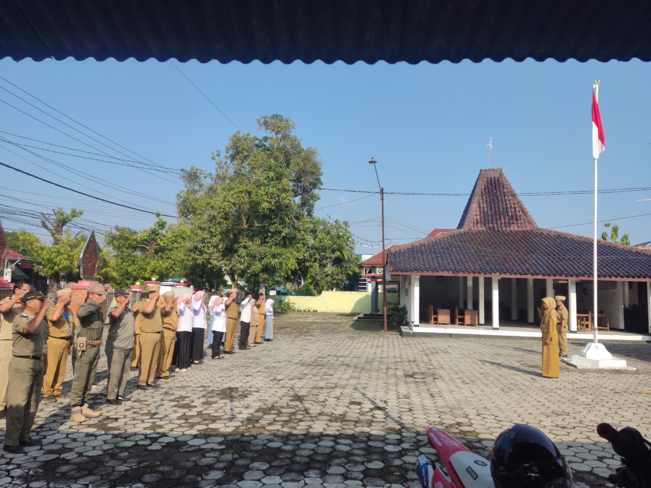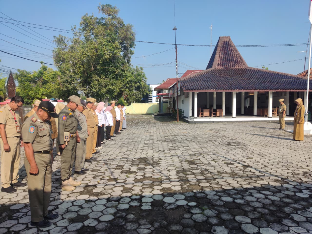 Senin, 22 September 2025. Apel pagi Karyawan-Karyawati Sekretariat dan Dinas Instansi Lingkungan Kantor Kecamatan Tawangharjo yang dipimpin oleh Ibu Sekcam Sri Sugiwati, S.P., M.M. di Halaman Kecamatan Tawangharjo