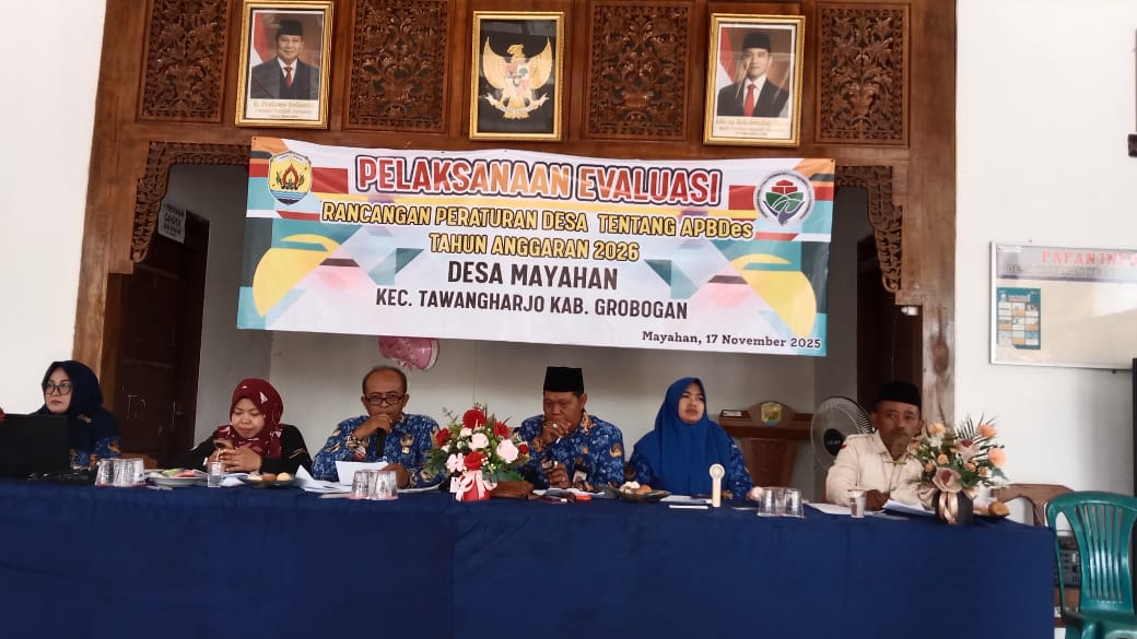 Senin, 17 November 2025. Pelaksanaan Evaluasi Rancangan Peraturan Desa Tentang APBDes Tahun Anggaran 2026 Desa Mayahan di Pendopo Balai Desa Mayahan