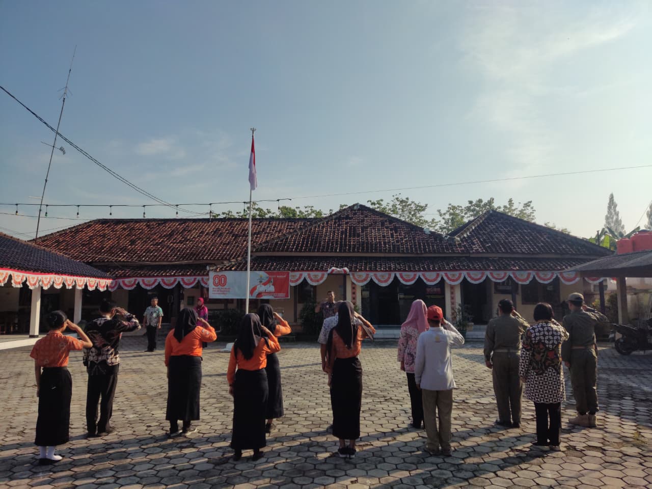 Kamis, 21 Agustus 2025. Apel pagi Karyawan-Karyawati Sekretariat dan Dinas Instansi Lingkungan Kantor Kecamatan Tawangharjo di Halaman Kecamatan Tawangharjo