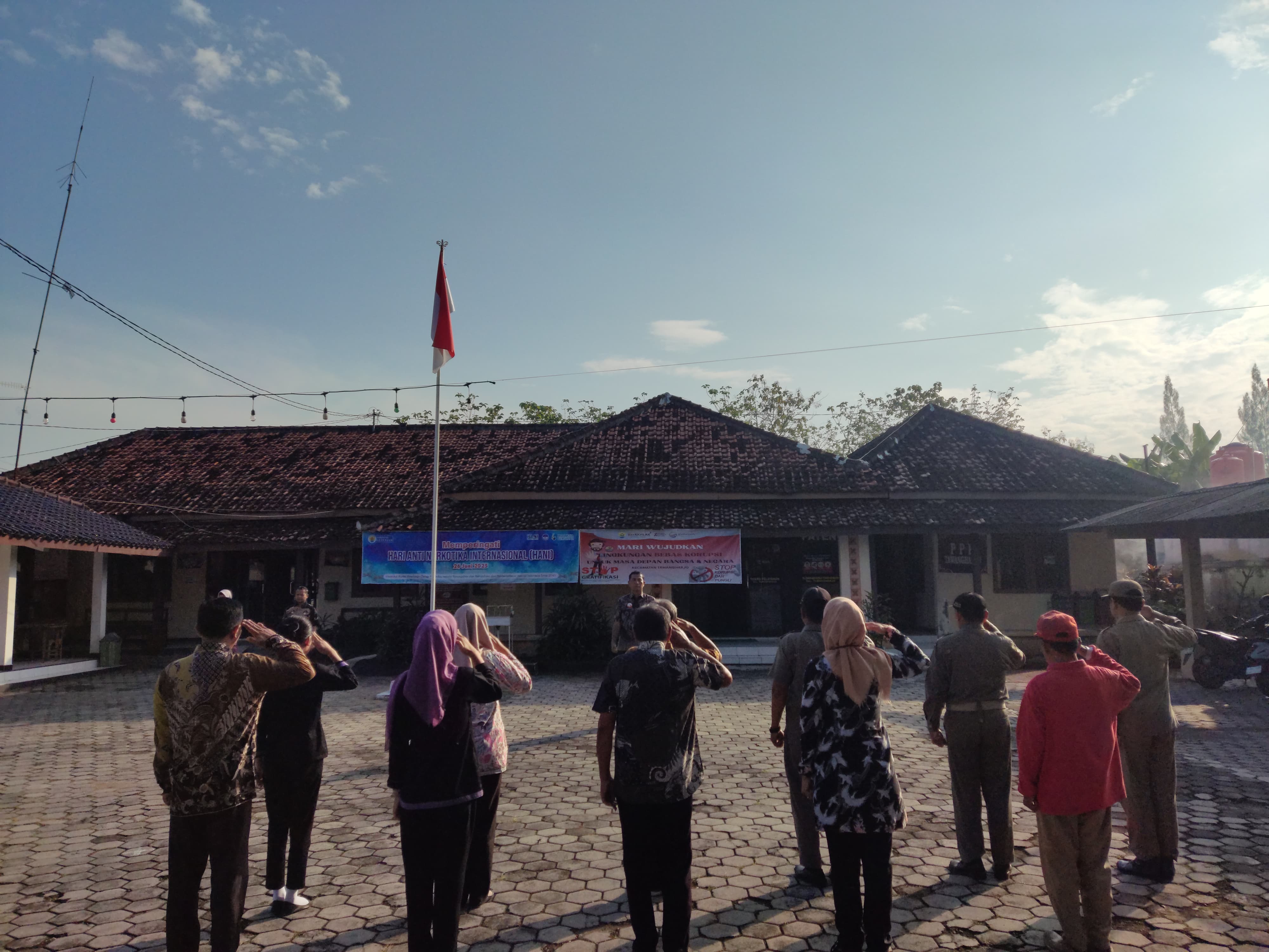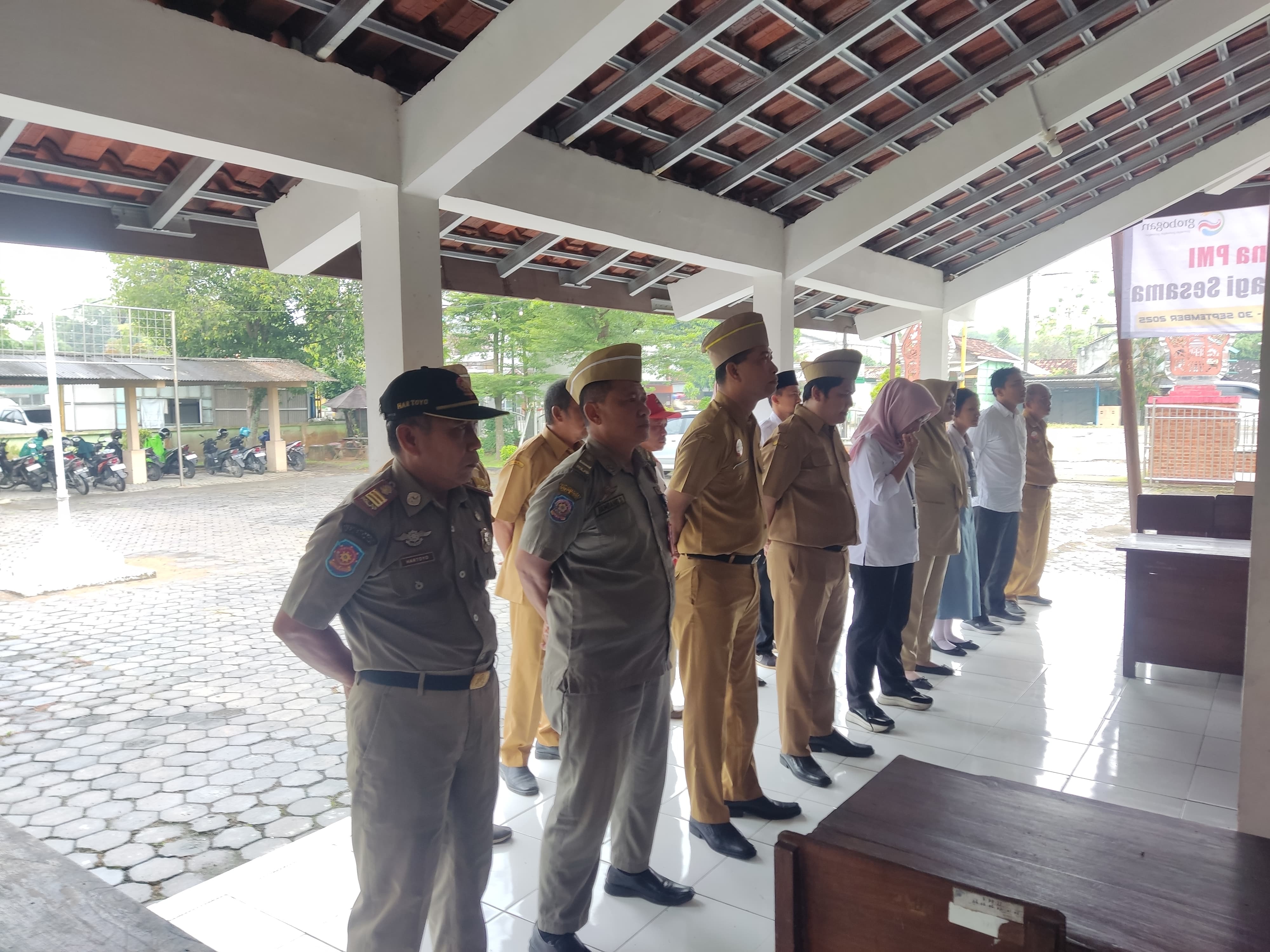 Kamis, 3 Juli 2025. Apel pagi Karyawan-Karyawati Sekretariat dan Dinas Instansi Lingkungan Kantor Kecamatan Tawangharjo di Halaman Kecamatan Tawangharjo