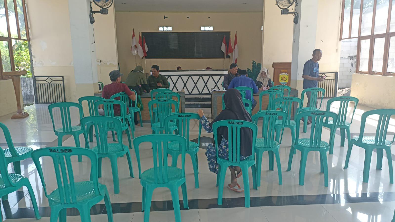 Kamis, 5 Juni 2025. Pemantauan pelaksanaan kegiatan penyaluran BLT DD Bulan Juni 2025 oleh Petugas BPR BKK Purwodadi (Perseroda) kantor cabang Tawangharjo di Pendopo Kantor Balai Desa Tawangharjo