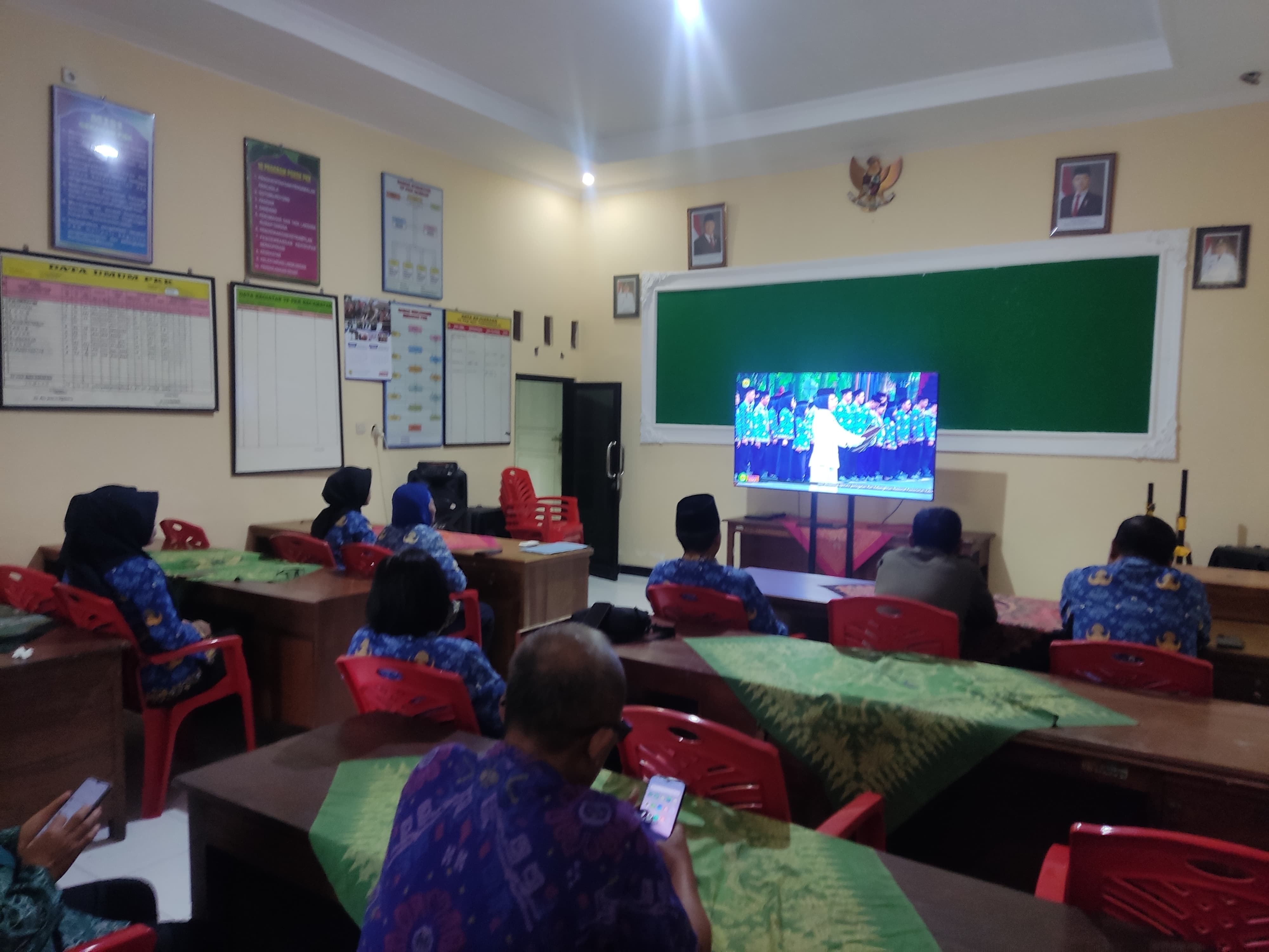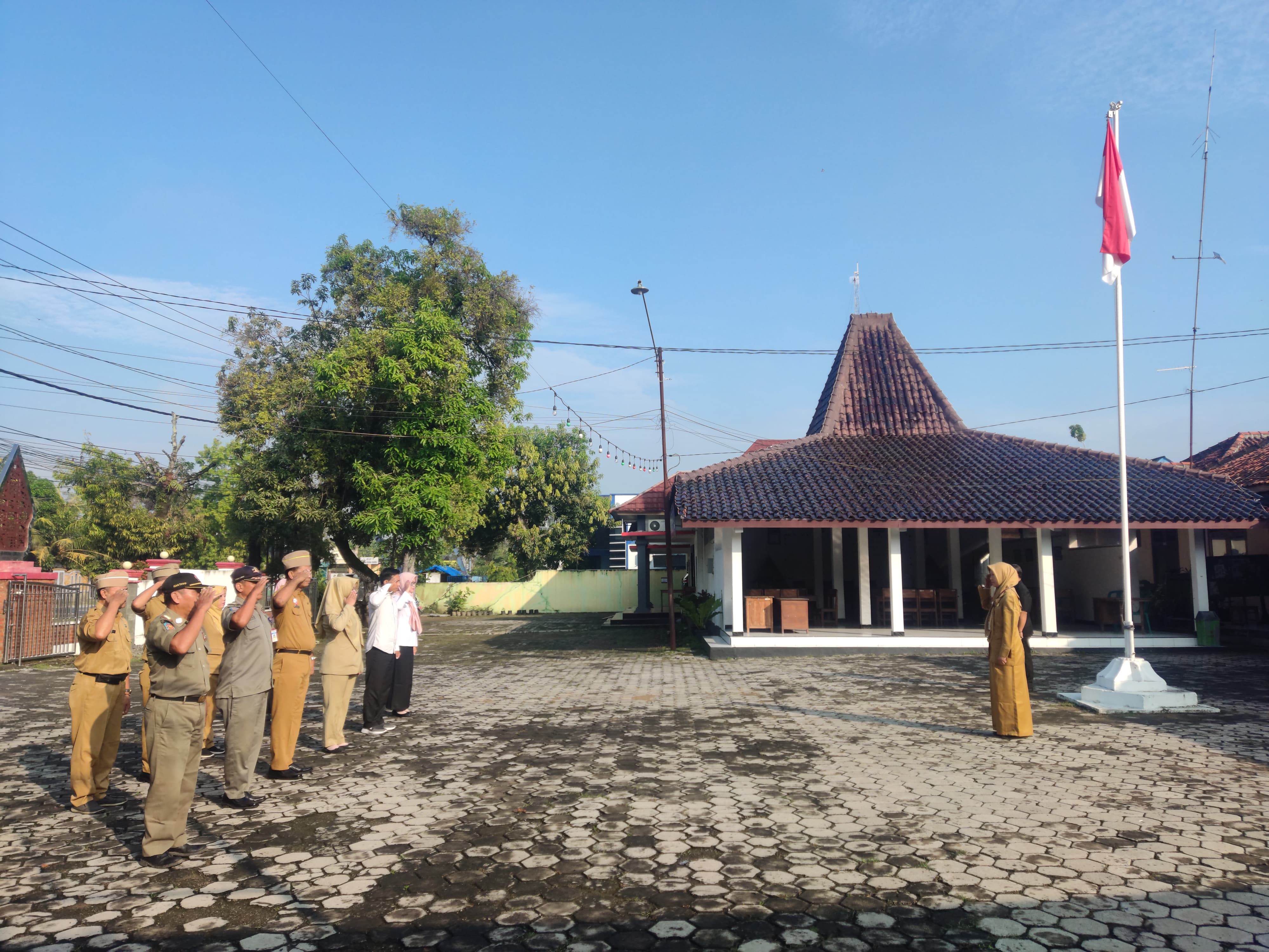 Selasa, 20 Mei 2025. Upacara Bendera dalam rangka Peringatan Hari Kebangkitan Nasional ke-117 Tahun 2025 secara virtual yang diikuti oleh Karyawan-Karyawati Sekretariat dan Dinas Instansi Lingkungan Kecamatan Tawangharjo di Aula Kecamatan Tawangharjo