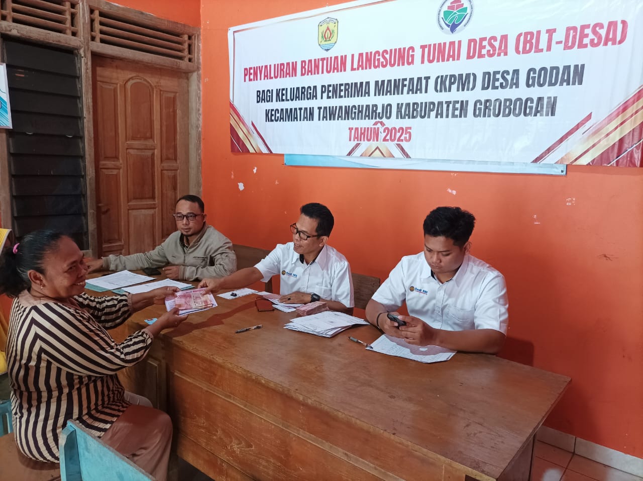 Senin, 10 Maret 2025. Pemantauan pelaksanaan kegiatan penyaluran BLT DD Bulan Januari - Maret 2025 oleh Petugas BPR BKK Purwodadi (Perseroda) cabang Tawangharjo di Pendopo Kantor Balai Desa Tawangharjo