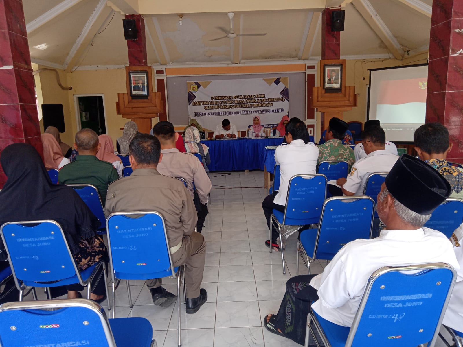 Rabu, 11 Desember 2024. Kegiatan Pembinaan Desa Layak Anak bagi Tim Gugus Tugas Desa Layak Anak (DEKELA) oleh DP3AKB Kab. Grobogan dihadiri Sekcam Tawangharjo Ibu Sri Sugiwati, S.P., M.M. di Pendopo Kantor Desa Jono