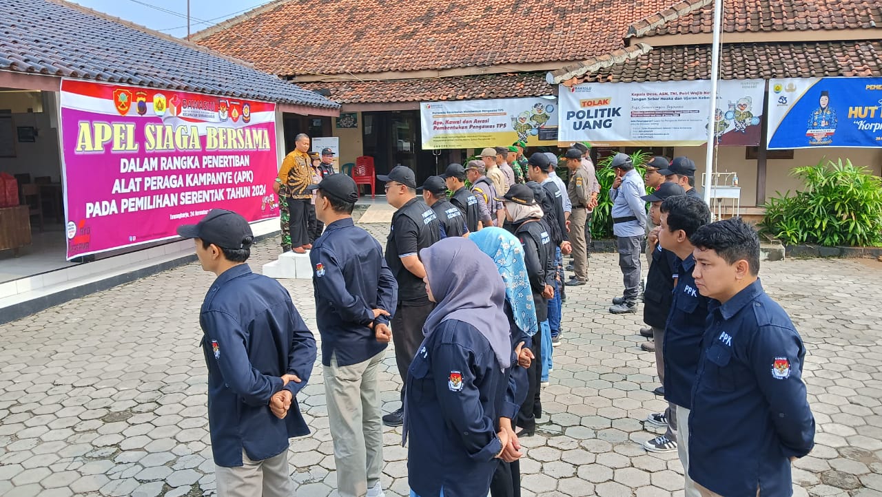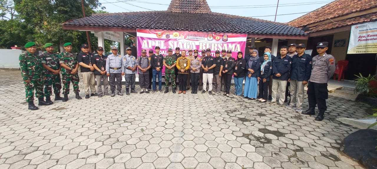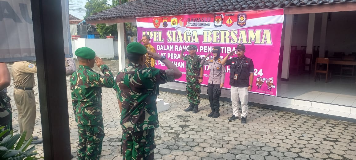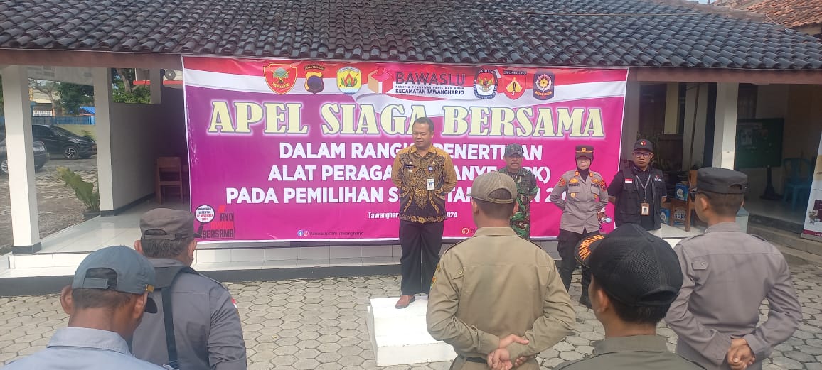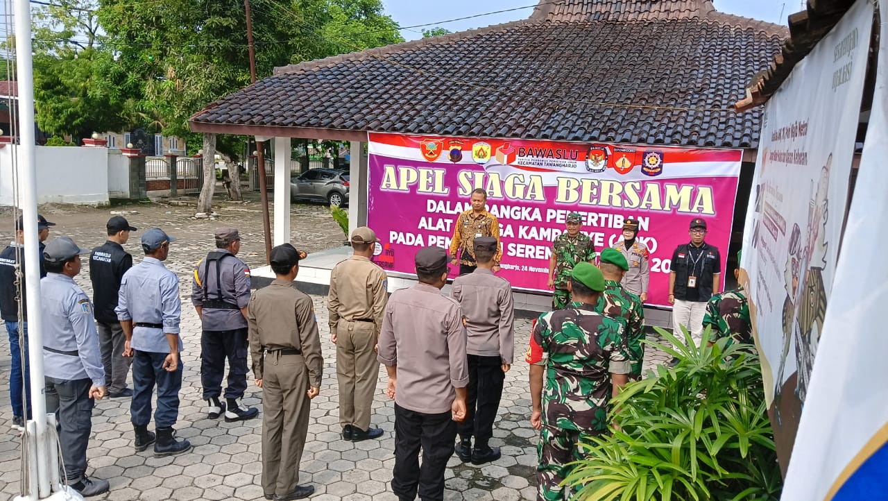 Minggu, 24 November 2024. Apel Siaga Bersama dalam rangka Penertiban Alat Peraga Kampanye (APK) pada Pemilihan Serentak Tahun 2024 di Halaman Kantor Kecamatan Tawangharjo
