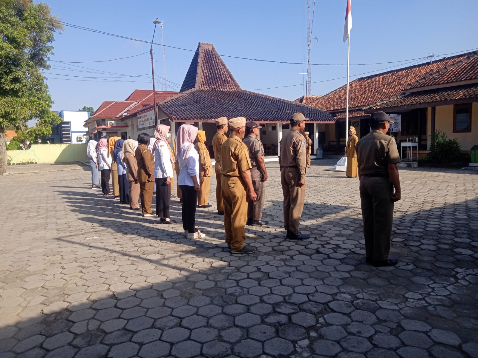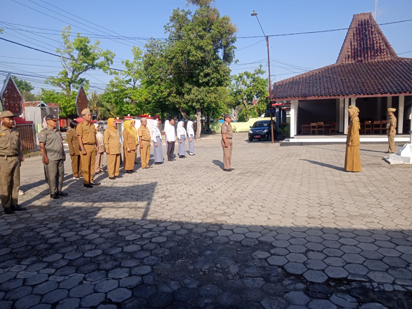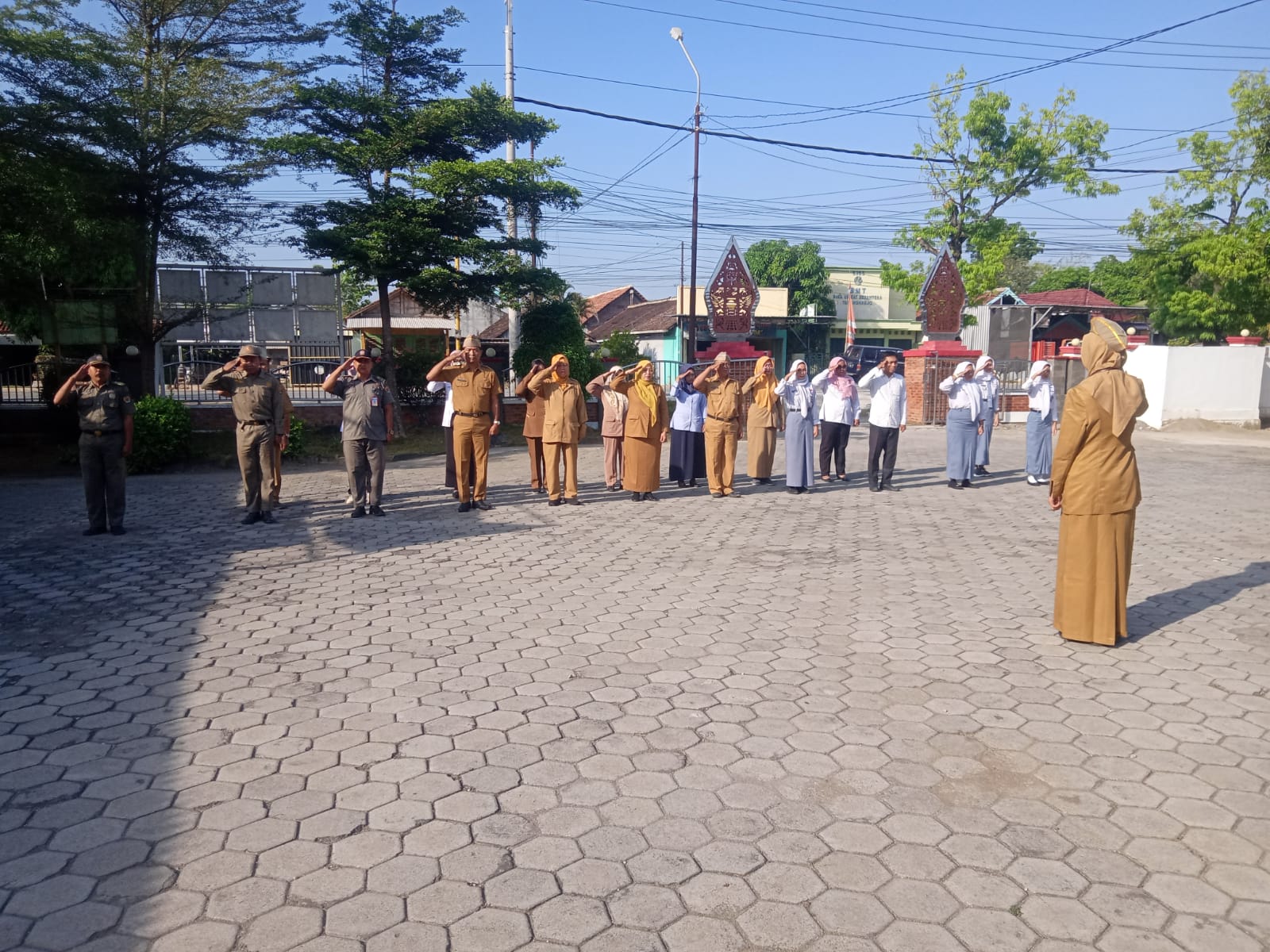 Senin, 9 September 2024. Apel pagi Karyawan-Karyawati Sekretariat dan Dinas Instansi Lingkungan Kantor Kecamatan Tawangharjo yang dipimpin oleh Ibu Sekcam Sri Sugiwati, S.P., M.M. di Halaman Kantor Kecamatan Tawangharjo