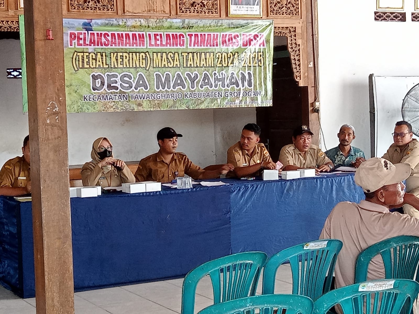 Senin 12 Februari 2024. Pelaksanaan Lelang Tanah Kas Desa (Tegal Kering) Masa Tanam 2024-2025 Desa Mayahan di Pendopo Balai Desa Mayahan