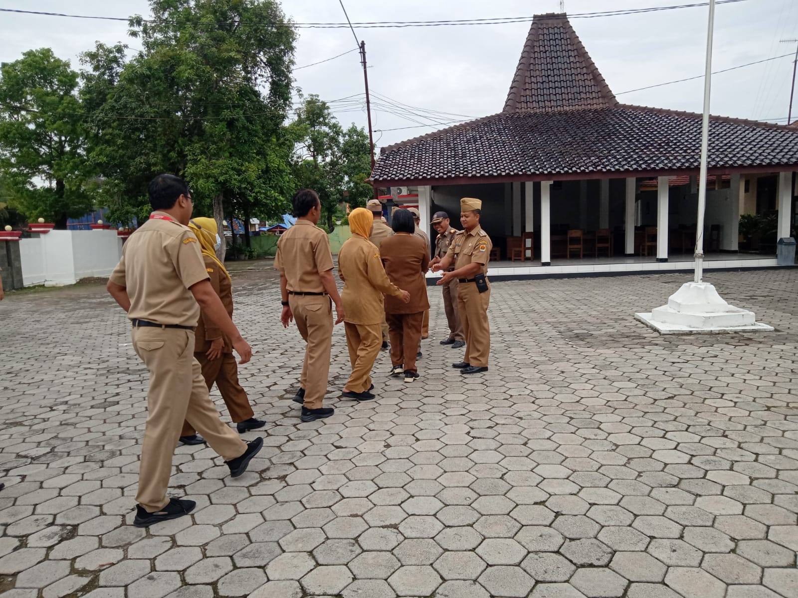 Apel pagi karyawan dan karyawati Sekretariat serta Dinas Instansi Kec. Tawangharjo yang dipimpin oleh Bapak Camat Tawangharjo, Senin 22 Januari 2024 di Halaman Kec. Tawangharjo