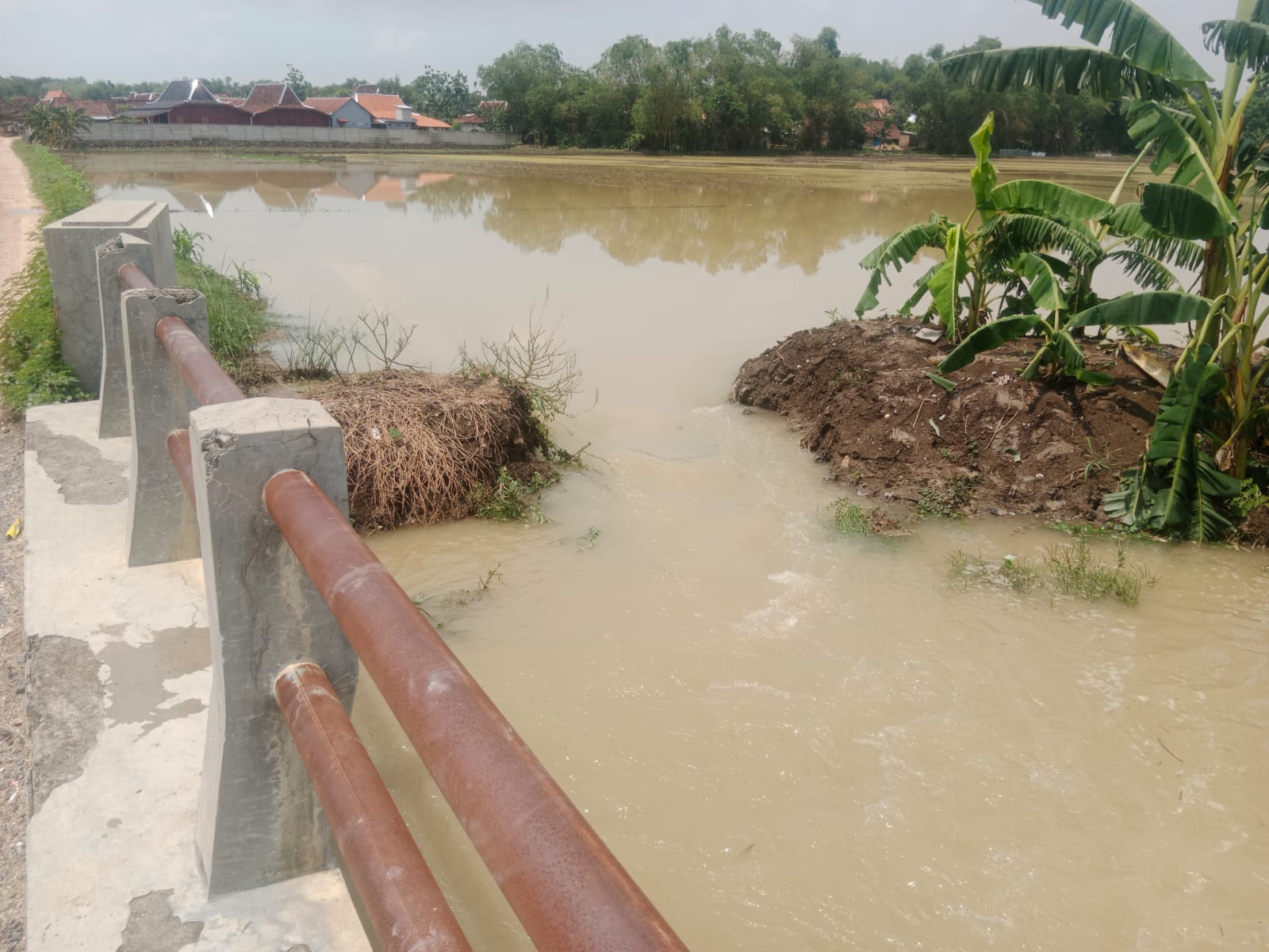 Terjadi Tanggung Jebol di Ruas Sungai Penjalinan, Rabu 6 Desember 2023 di Dsn. Penjalinan Desa Plosorejo Kecamatan Tawangharjo Kabupaten Grobogan