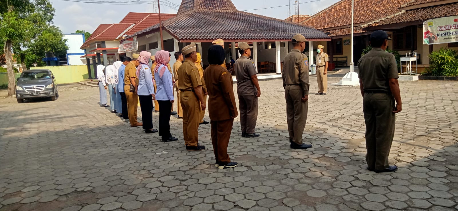 Apel pagi karyawan/ti Sekertariat dan Dinas Instansi Kec Tawangharjo, Senin 27 November 2023 di halaman Kec. Tawangharjo