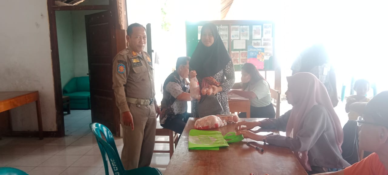 Pembagian telur ayam dan daging ayam bagi KRS / Keluarga Resiko Stanting, Kamis 16 November 2023 di Balai Desa Tarub.