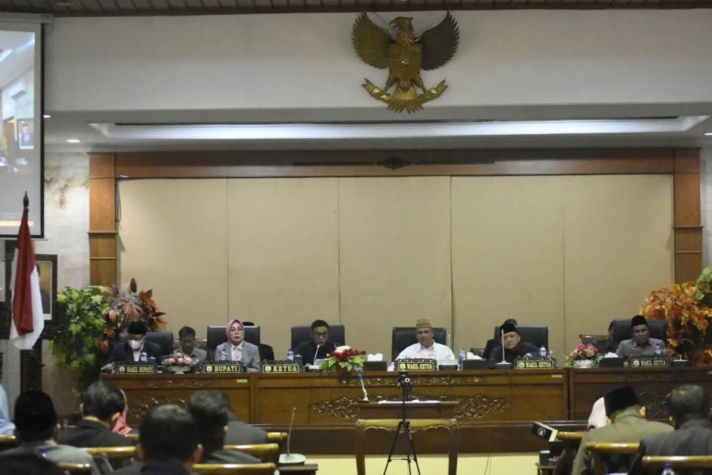 Rapat Paripurna ke - 39 : Pembicaraan Tingkat II ( Pengambilan Keputusan dan Persetujuan Bersama ) atas Raperda tentang APBD Kab.Grobogan TA.2024. Dilanjutkan Rapat Paripurna ke - 40 : Pembicaraan Tingkat I Tahap Ketiga ( Jawaban Bupati terhadap Pemandang Details Published: Saturday, 11 November 2023 02:14 Written by admin tawangharjo