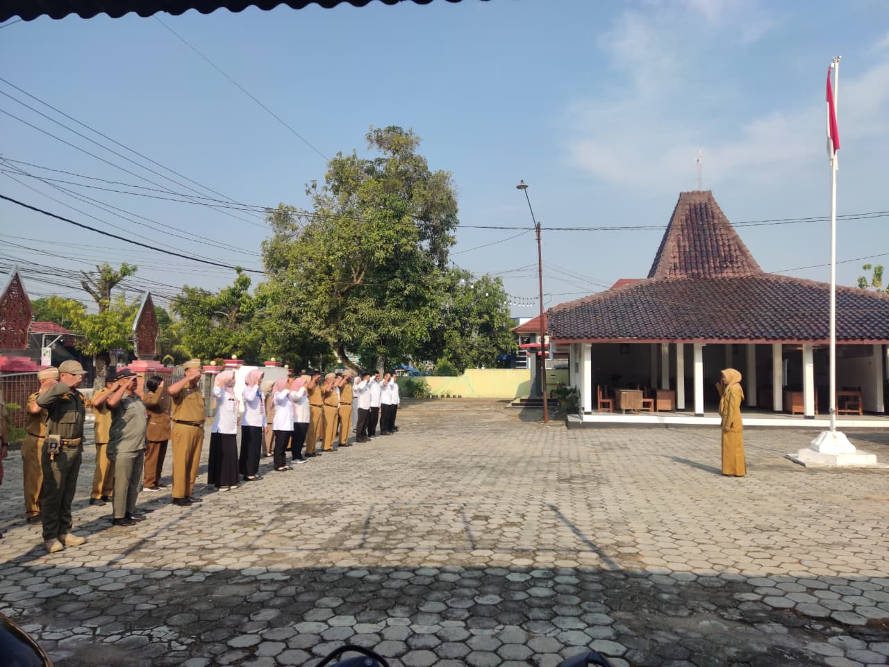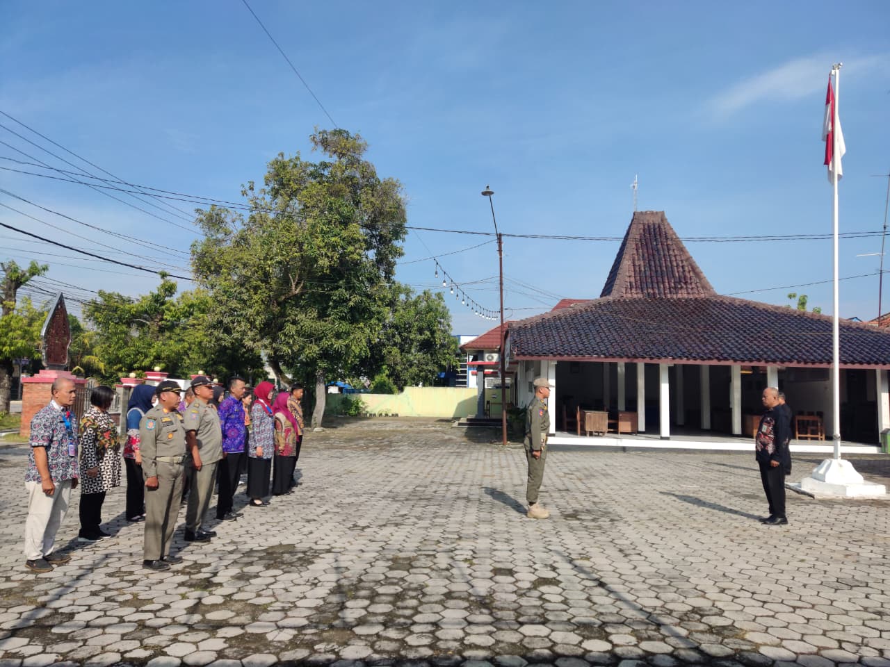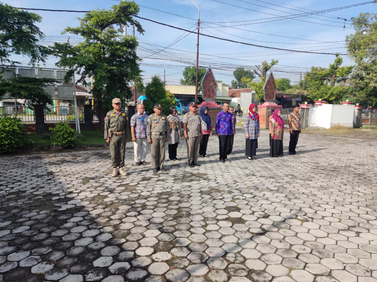 Senin, 6 Oktober 2025. Apel pagi Karyawan-Karyawati Sekretariat dan Dinas Instansi Lingkungan Kantor Kecamatan Tawangharjo yang dipimpin oleh Ibu Sekcam Sri Sugiwati, S.P., M.M. di Halaman Kecamatan Tawangharjo