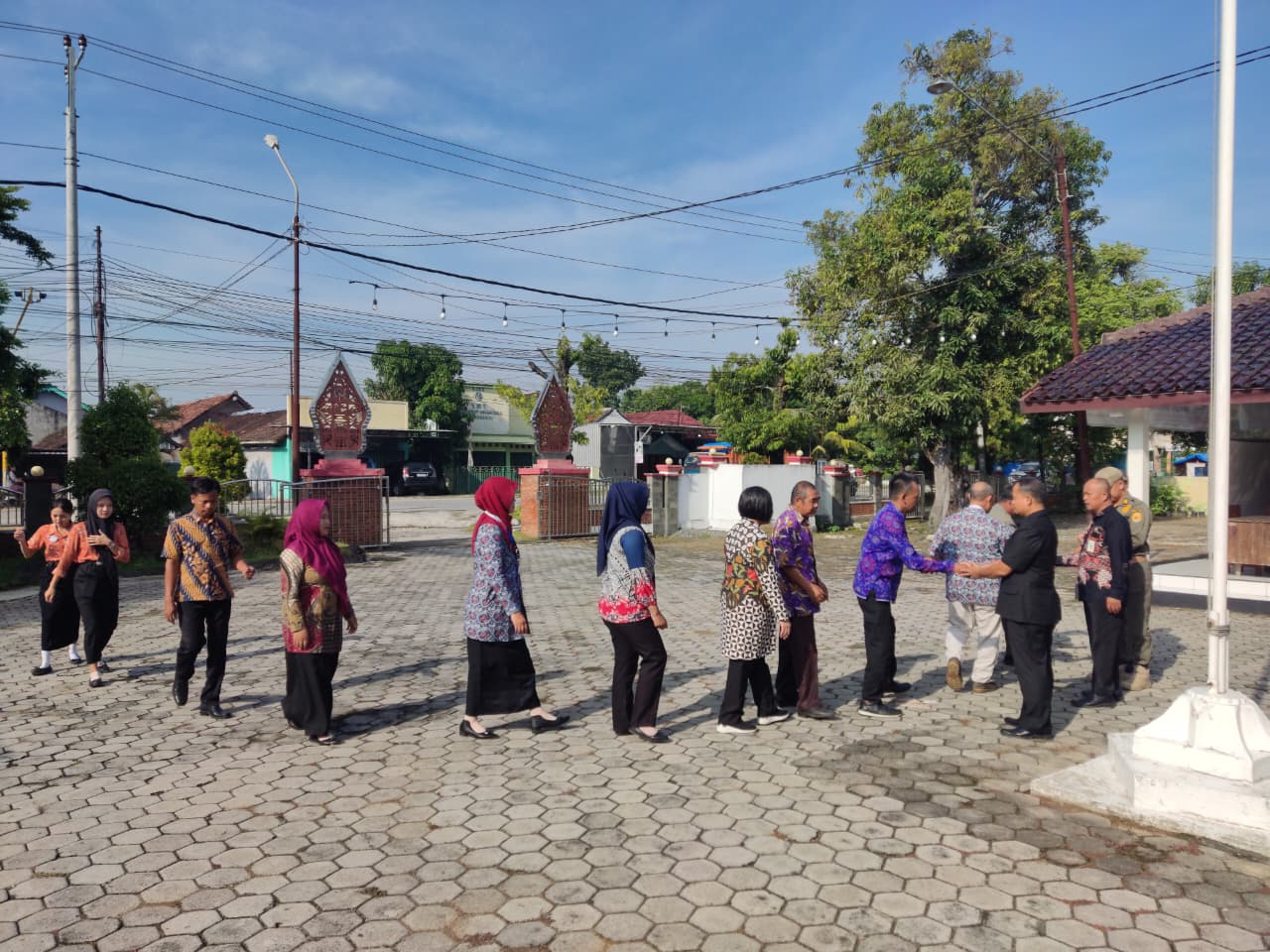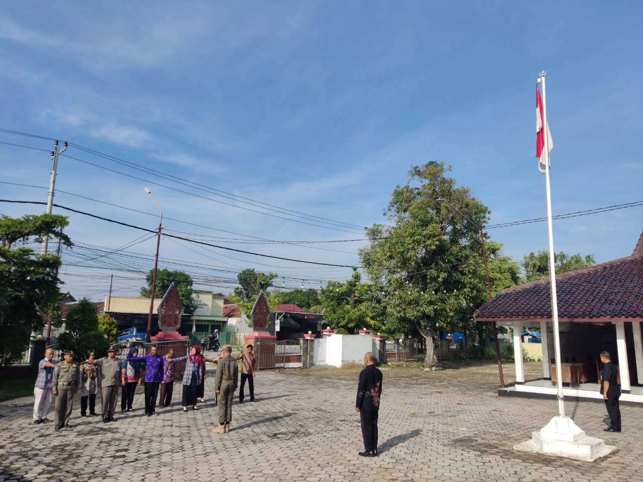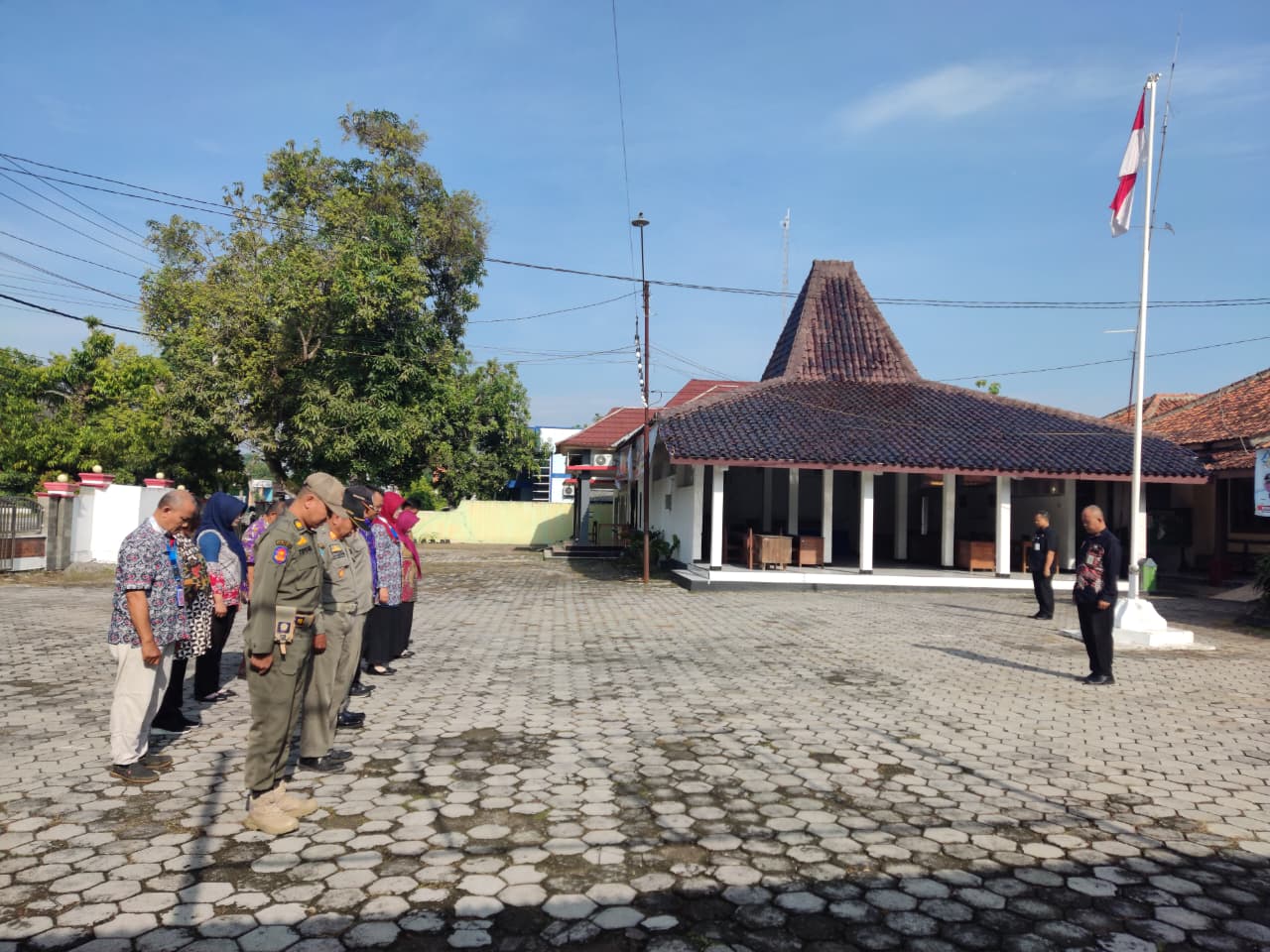 Senin, 6 Oktober 2025. Apel pagi Karyawan-Karyawati Sekretariat dan Dinas Instansi Lingkungan Kantor Kecamatan Tawangharjo yang dipimpin oleh Ibu Sekcam Sri Sugiwati, S.P., M.M. di Halaman Kecamatan Tawangharjo