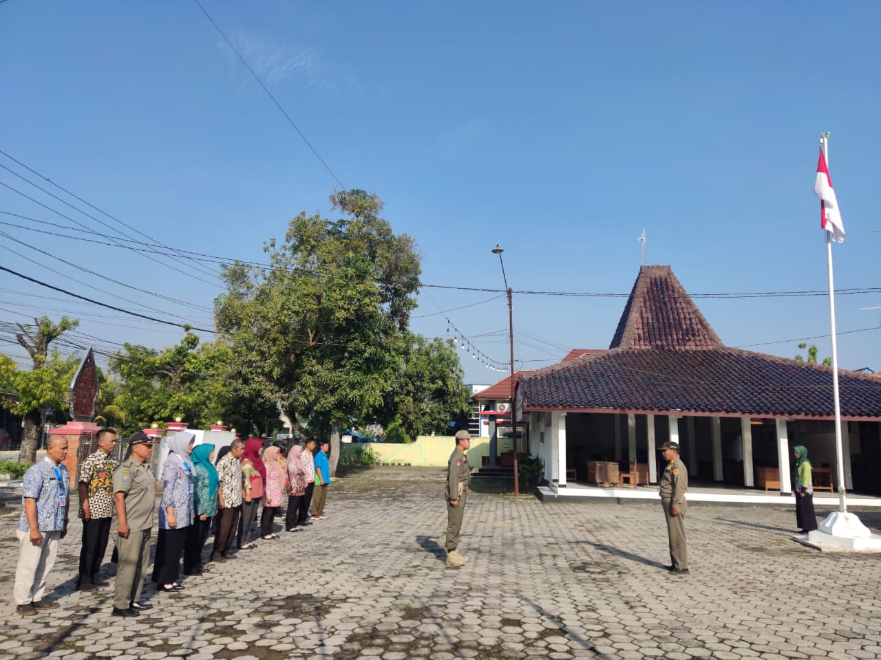 Kamis, 18 September 2025. Apel pagi Karyawan-Karyawati Sekretariat dan Dinas Instansi Lingkungan Kantor Kecamatan Tawangharjo di Halaman Kecamatan Tawangharjo