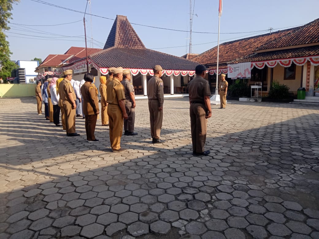 Senin, 19 Agustus 2024. Apel pagi Karyawan-Karyawati Sekretariat dan Dinas Instansi Lingkungan Kantor Kecamatan Tawangharjo yang dipimpin oleh Camat Tawangarjo Bapak Joko Supriyanto, S. S.T.P., M.H. di Halaman Kantor Kecamatan Tawangharjo