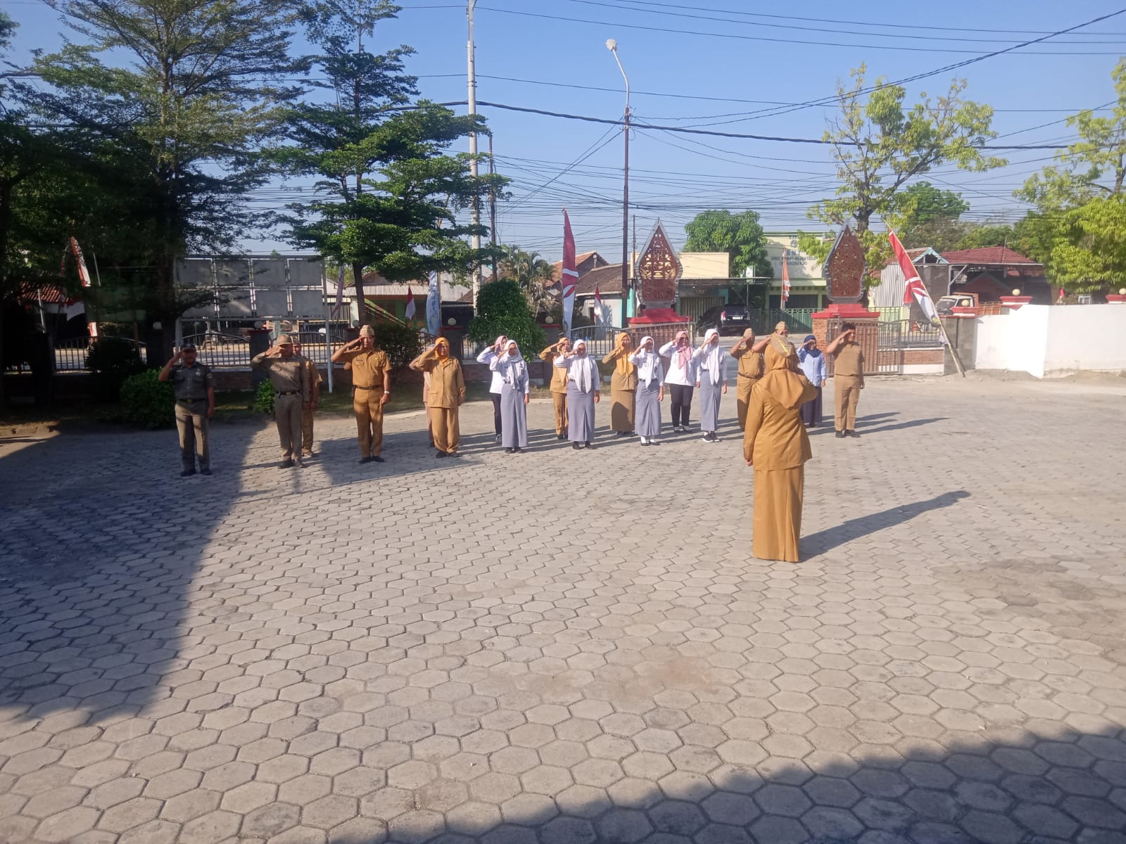 Senin, 26 Agustus 2024. Apel pagi Karyawan-Karyawati Sekretariat dan Dinas Instansi Lingkungan Kantor Kecamatan Tawangharjo yang dipimpin oleh Ibu Sekcam Sri Sugiwati, S.P., M.M. di Halaman Kantor Kecamatan Tawangharjo