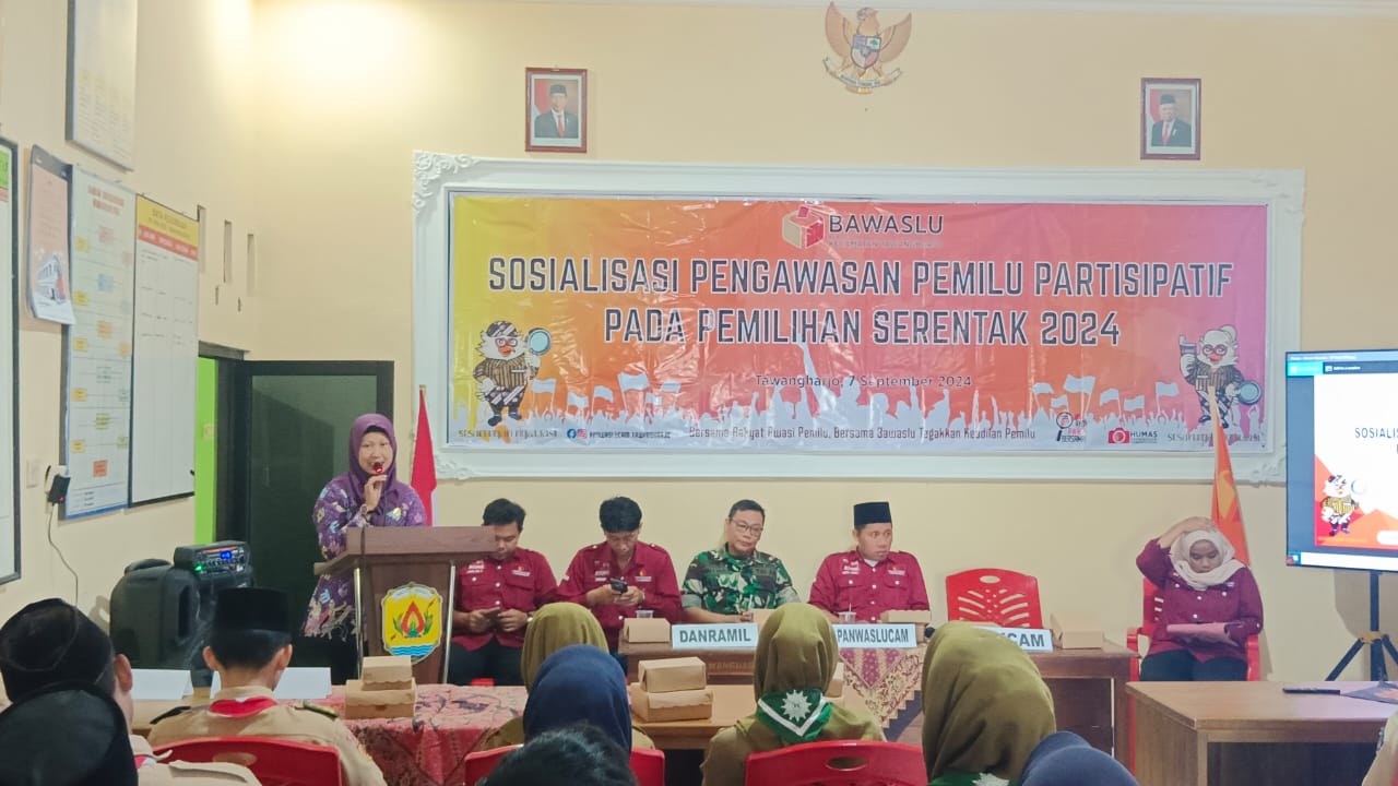 Sabtu, 7 September 2024. Sosialisasi Pengawasan Pemilu Partisipatif pada pemilihan serentak Tahun 2024 di Aula PKK Kantor Kecamatan Tawangharjo Details Category: Uncategorised Published: Friday, 13 September 2024 21:12 Written by admin tawangharjo Hits: 249 Prev Next