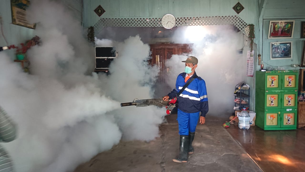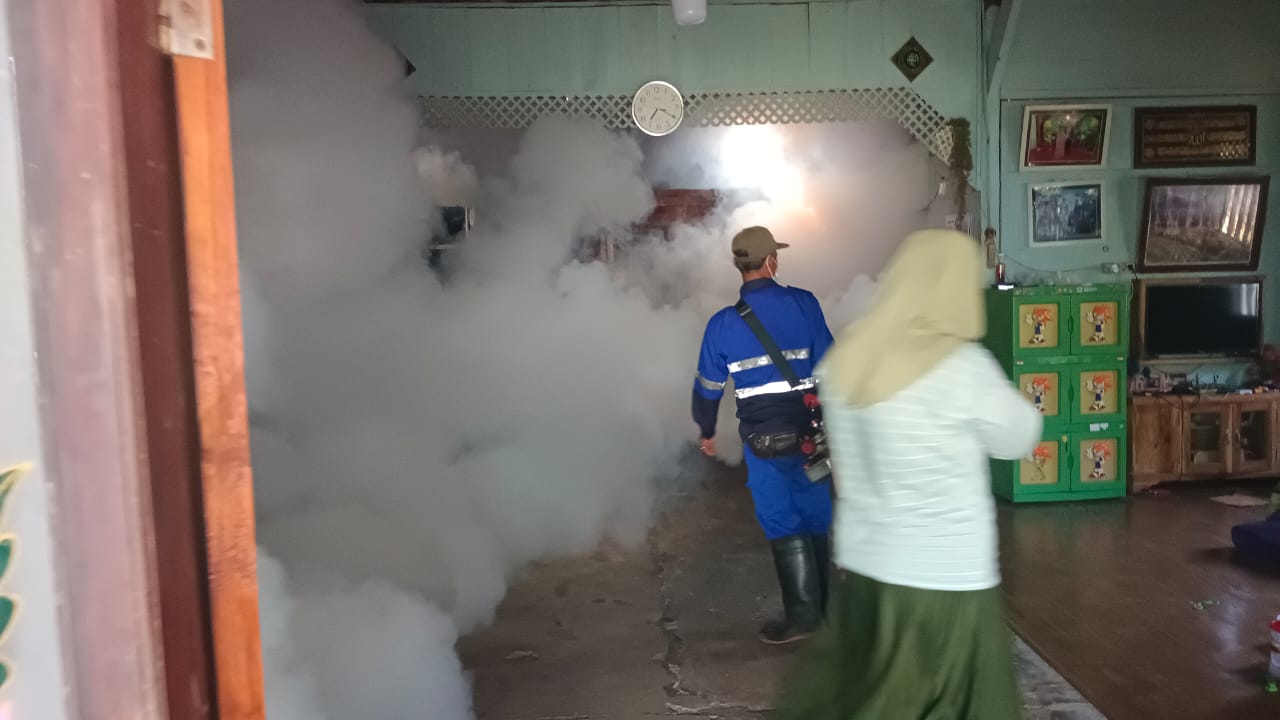 Rabu, 9 Oktober 2024. Monitoring oleh Kasi Trantibum Kecamatan dalam kegiatan Fogging/Penyemperotan pada rumah warga yang terindikasi DBD/Nyamuk Demam Berdarah di Desa Pulongrambe