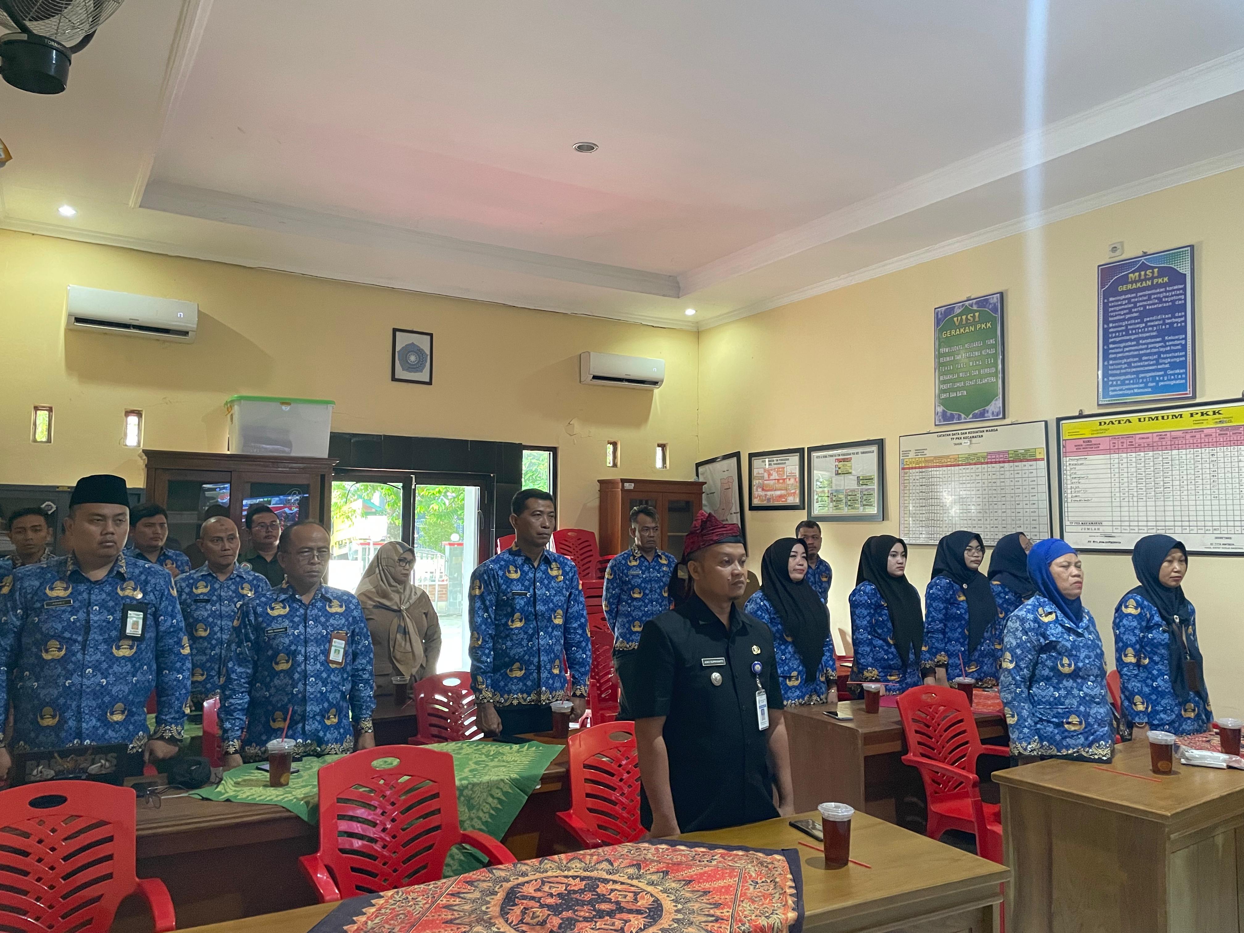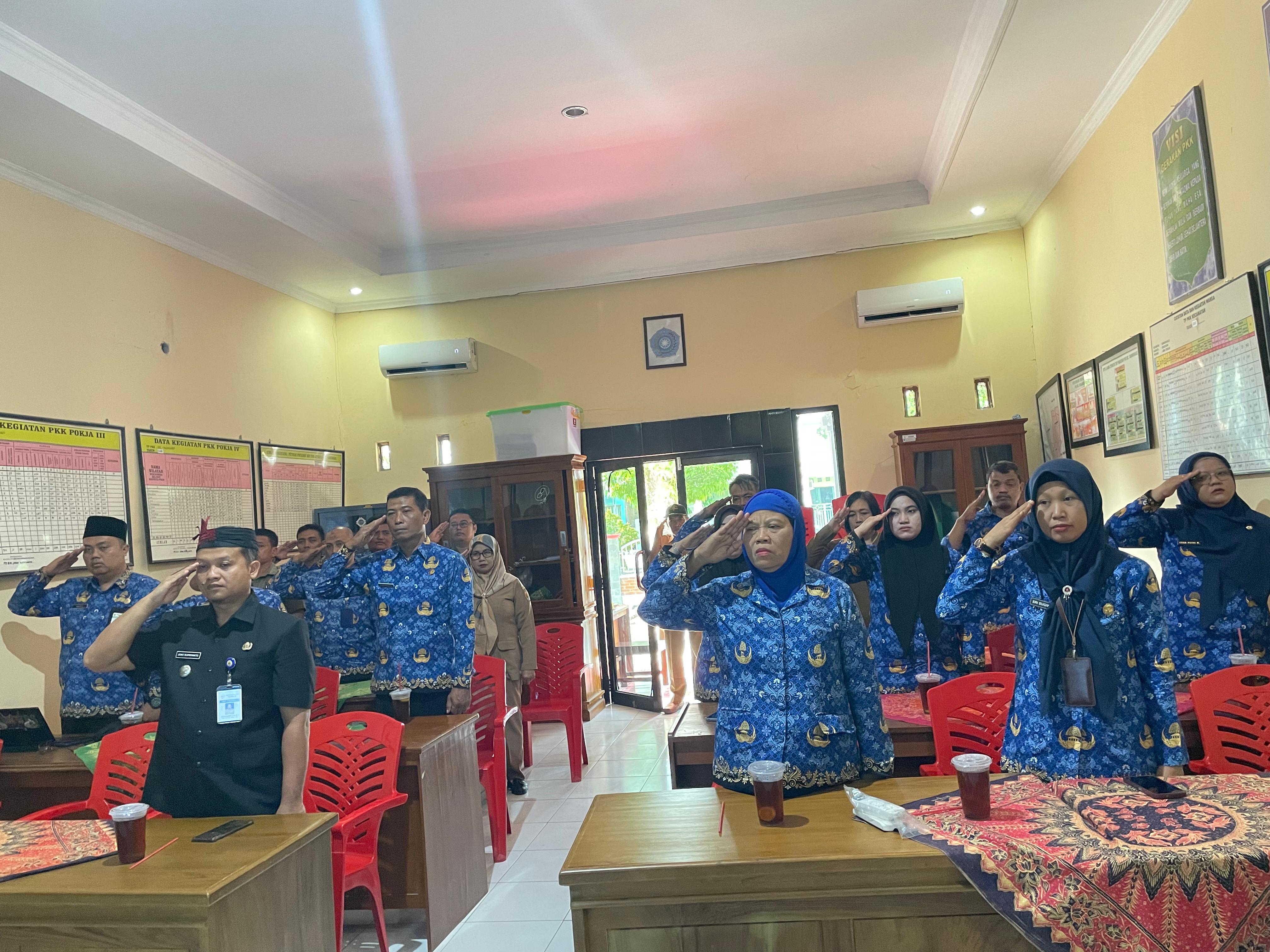 Senin, 28 Oktober 2024. Mengikuti Upacara Pengibaran Bendera dalam rangka Peringatan Hari Sumpah Pemuda ke - 96 Tahun 2024 secara virtual yang diikuti oleh Karyawan-Karyawati Sekretariat dan Dinas Instansi Lingkungan Kecamatan Tawangharjo di Aula PKK Keca