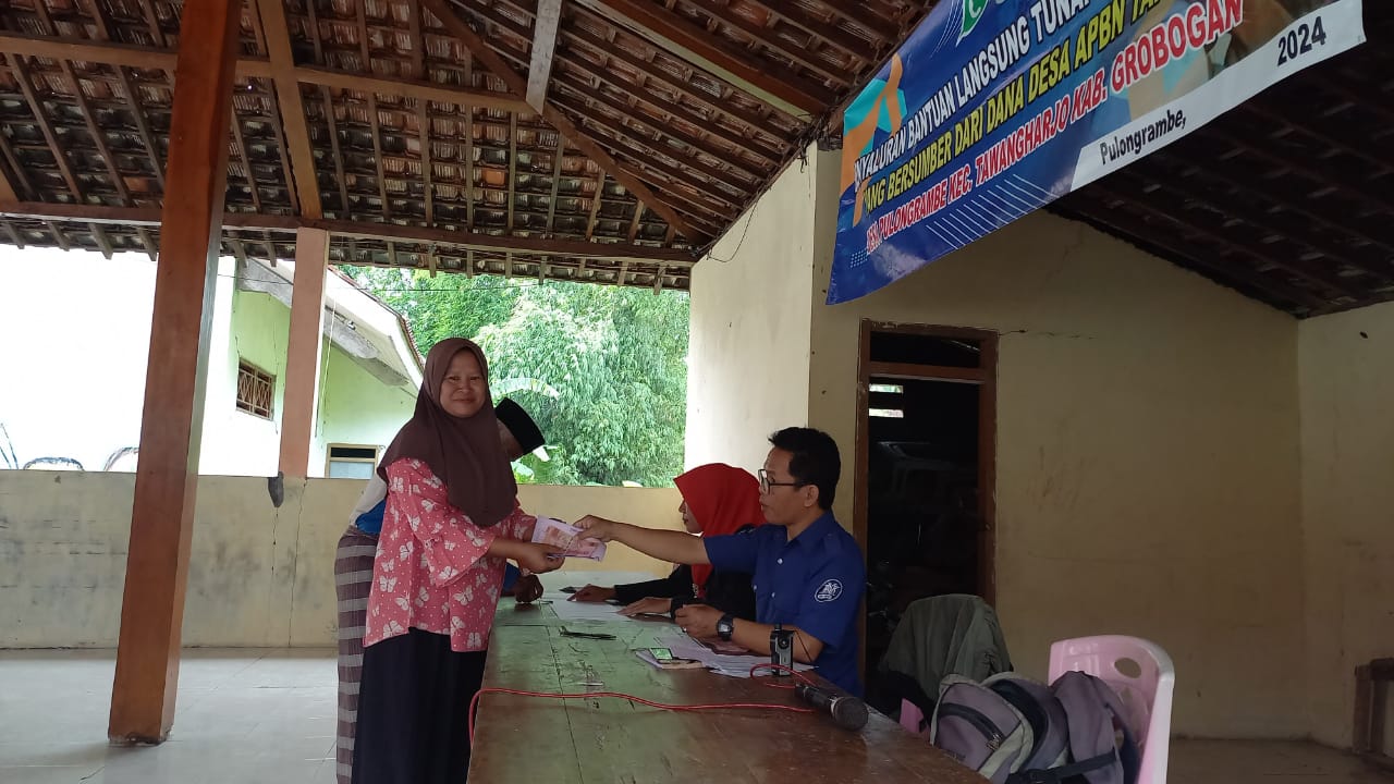 Rabu, 4 Desember 2024. Pemantauan pelaksanaan kegiatan penyaluran BLT DD Bulan Desember 2024 oleh Petugas BPR BKK Purwodadi (Perseroda) cabang Tawangharjo di Pendopo Kantor Balai Desa Pulongrambe