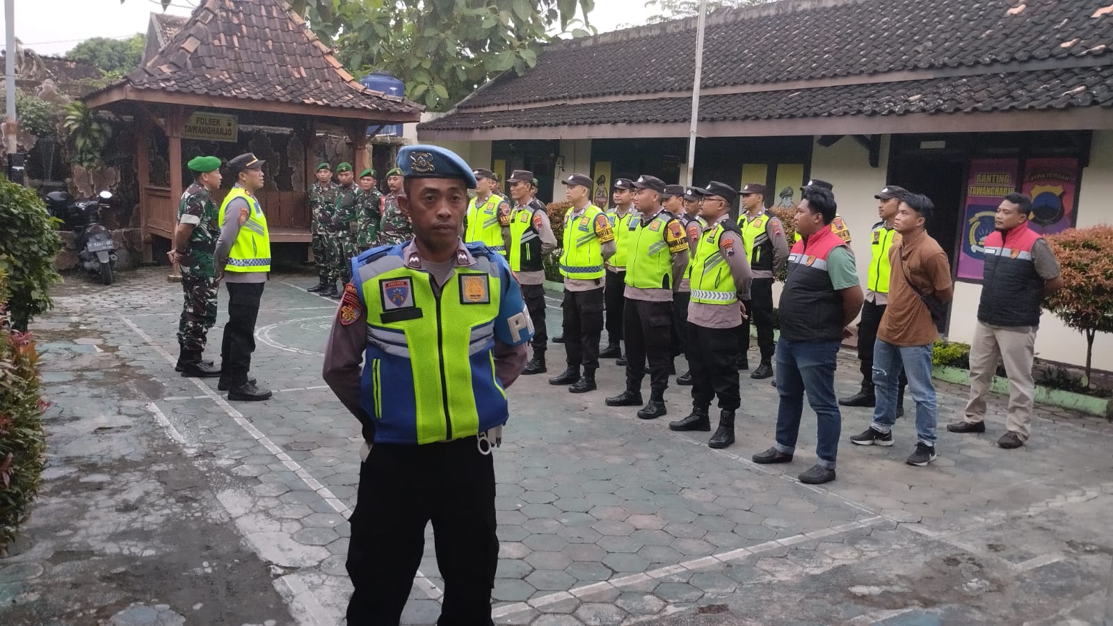 Minggu, 30 Maret 2025. Pelaksanaan Apel bersama Forkopimcam dan kegiatan patroli pengamanan Takbir Keliling serta Perayaan Hari Raya Idul Fitri 1446 H / 2025 M di Markas Polsek Tawangharjo