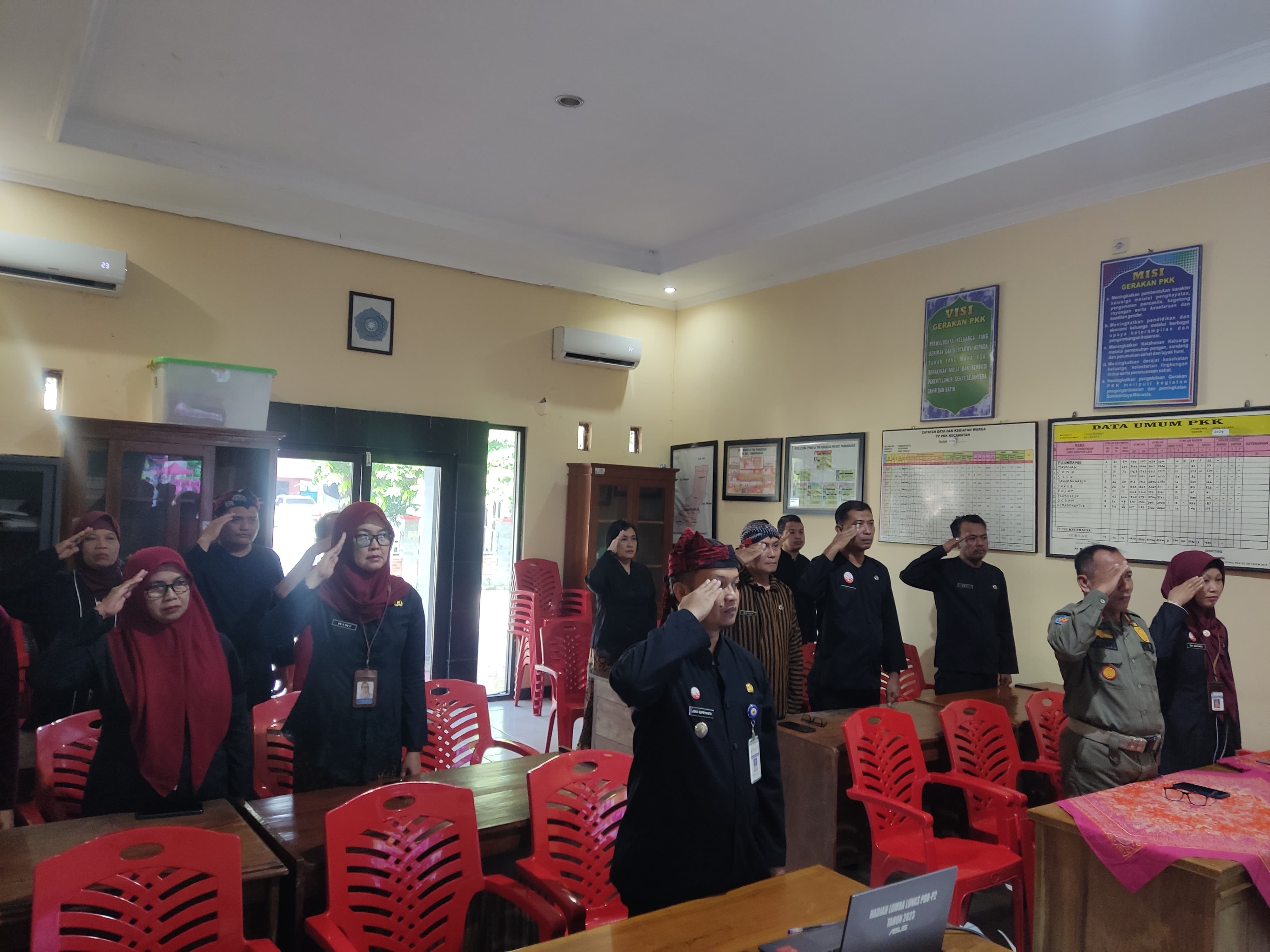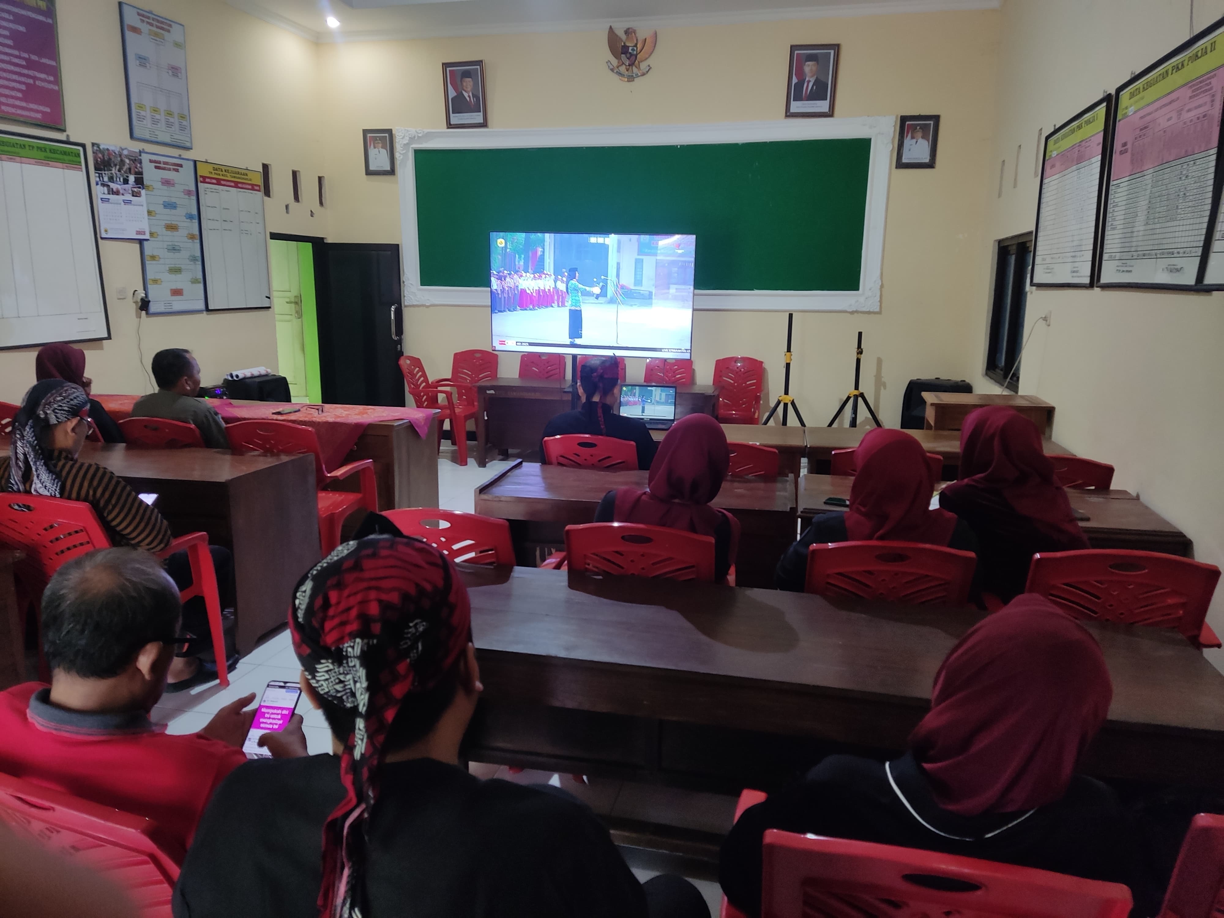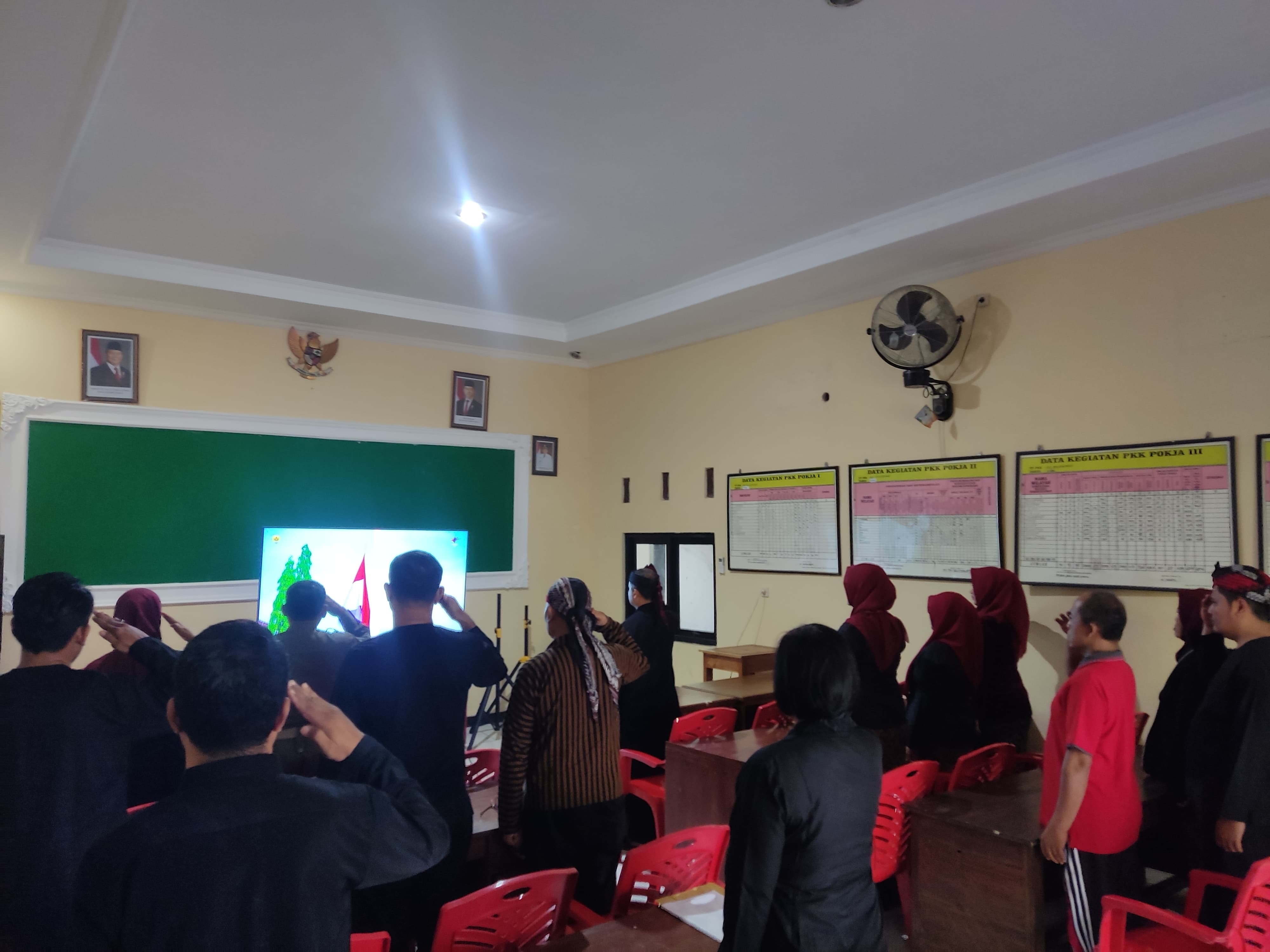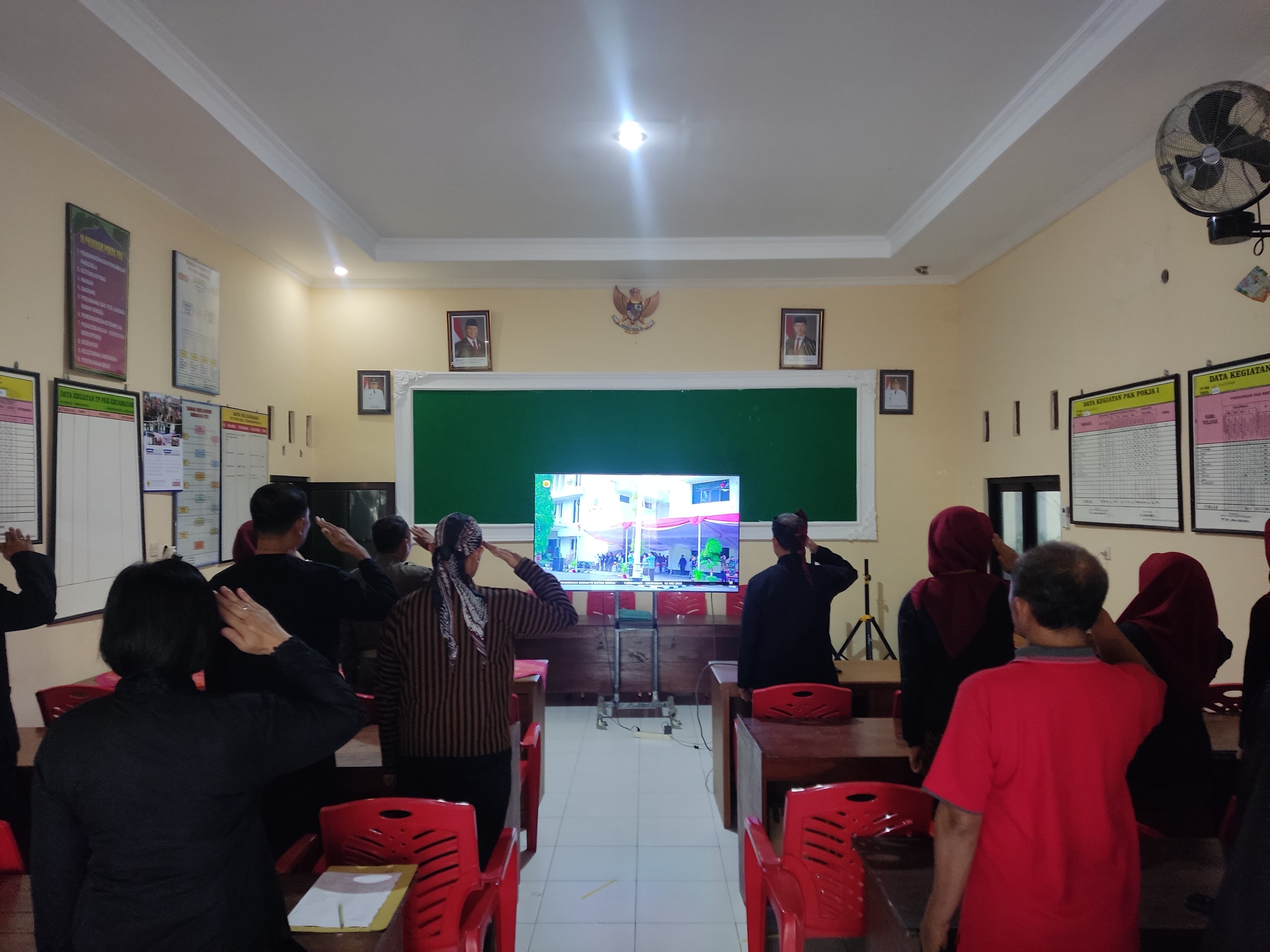 Jum'at, 2 Mei 2025. Mengikuti Upacara Bendera dalam rangka Peringatan Hari Pendidikan Nasional Tahun 2025 secara virtual yang diikuti oleh Karyawan-Karyawati Sekretariat dan Dinas Instansi Lingkungan Kecamatan Tawangharjo di Aula Kecamatan Tawangharjo