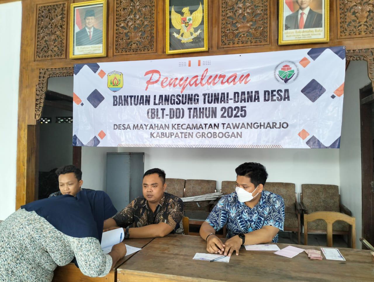 Kamis, 5 Juni 2025. Pemantauan pelaksanaan kegiatan penyaluran BLT DD Bulan Juni 2025 oleh Petugas BPR BKK Purwodadi (Perseroda) kantor cabang Tawangharjo di Pendopo Kantor Balai Desa Mayahan
