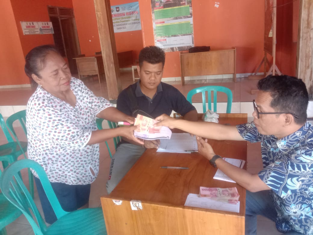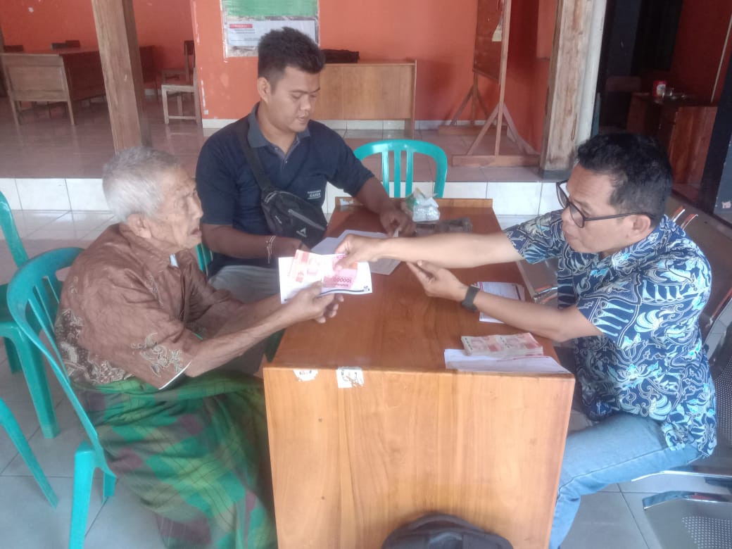 Kamis, 5 Juni 2025. Pemantauan pelaksanaan kegiatan penyaluran BLT DD Bulan Juni 2025 oleh Petugas BPR BKK Purwodadi (Perseroda) kantor cabang Tawangharjo di Pendopo Kantor Balai Desa Godan