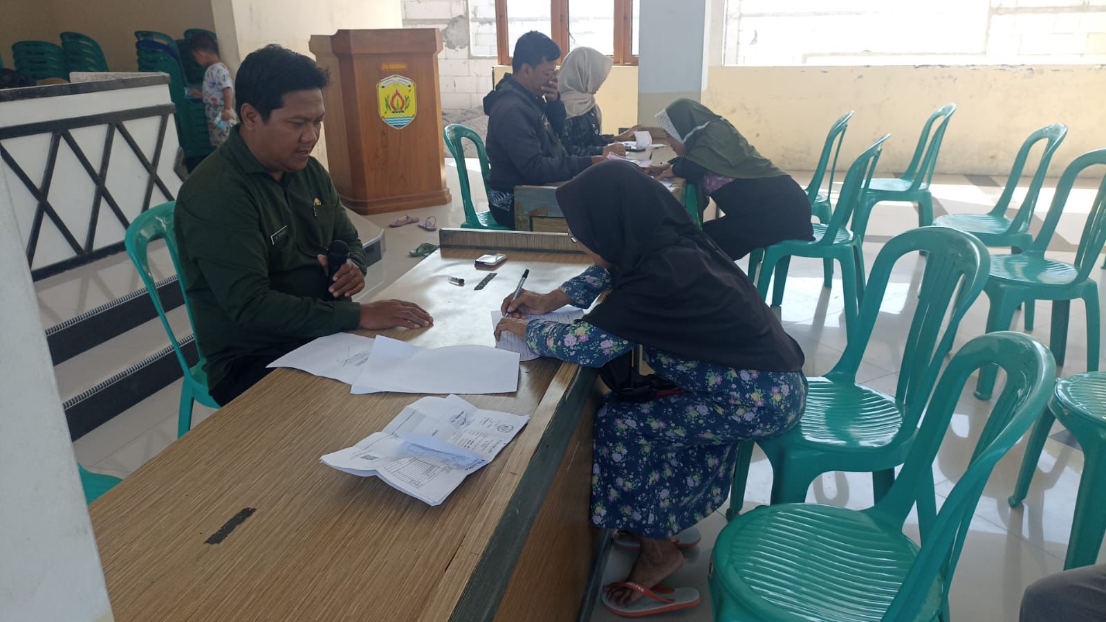 Kamis, 5 Juni 2025. Pemantauan pelaksanaan kegiatan penyaluran BLT DD Bulan Juni 2025 oleh Petugas BPR BKK Purwodadi (Perseroda) kantor cabang Tawangharjo di Pendopo Kantor Balai Desa Tawangharjo