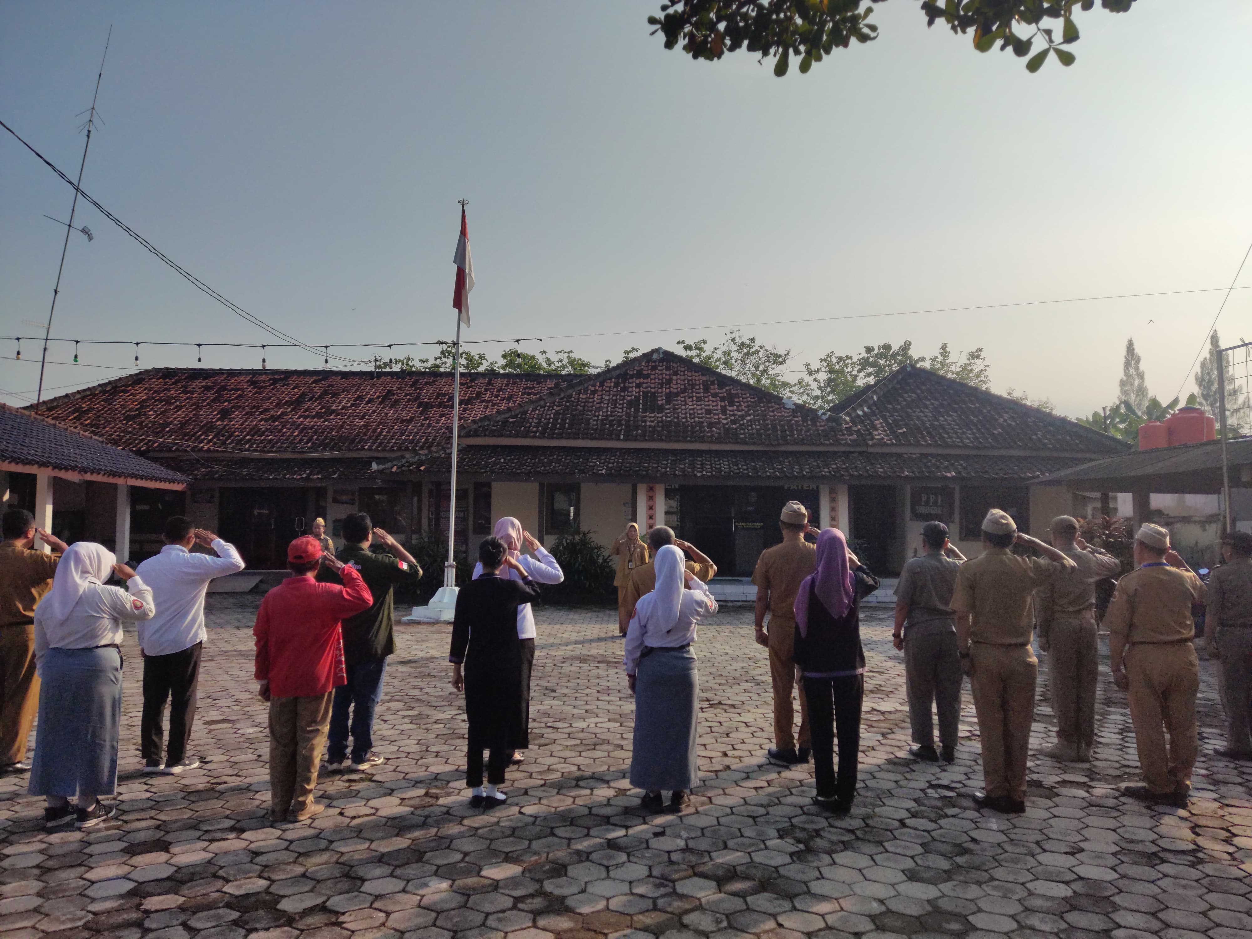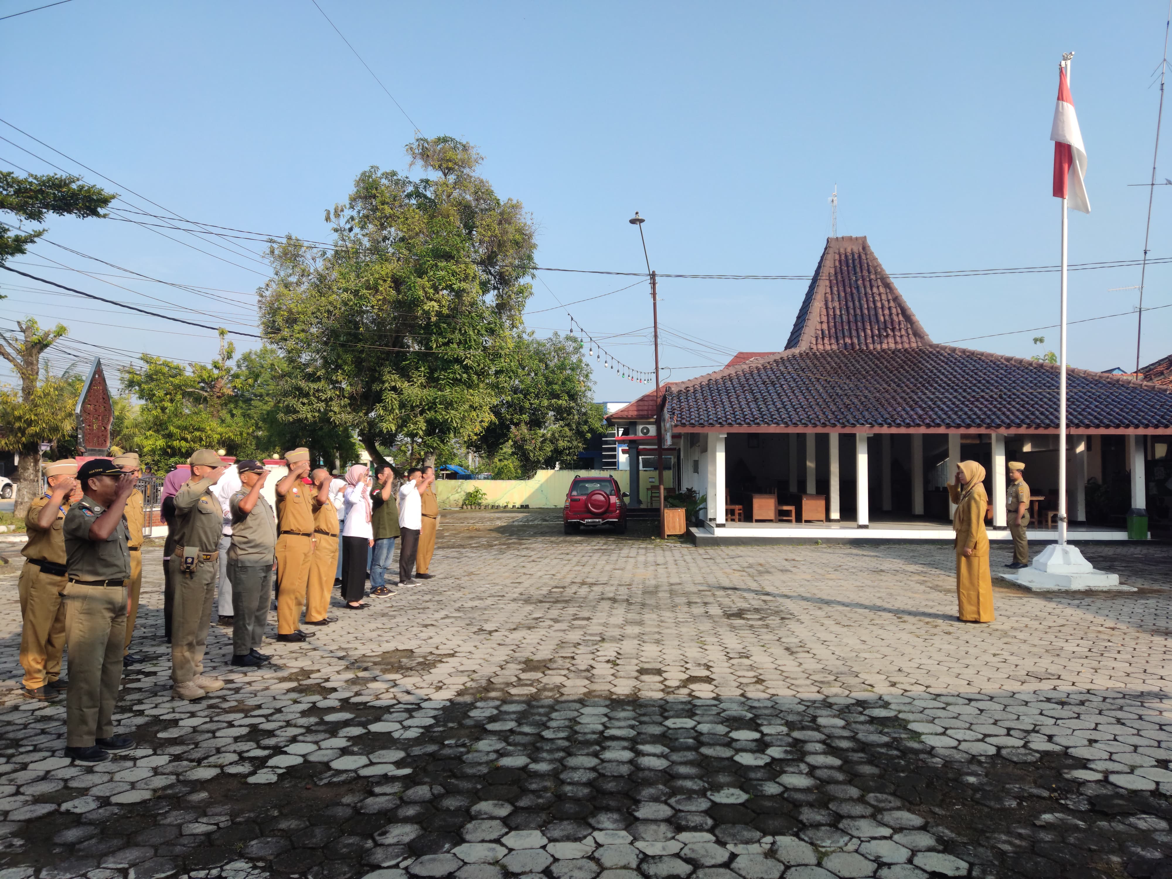 Senin, 28 Juli 2025. Apel pagi Karyawan-Karyawati Sekretariat dan Dinas Instansi Lingkungan Kantor Kecamatan Tawangharjo yang dipimpin oleh Ibu Sekcam Sri Sugiwati, S.P., M.M. di Halaman Kecamatan Tawangharjo