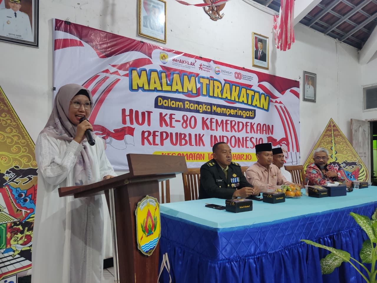 Sabtu, 16 Agustus 2025. Kegiatan malam tirakatan dalam rangka memperingati HUT Kemerdekaan RI ke-79 Tahun 2024 di Pendopo Kantor Kecamatan Tawangharjo Details Category: Uncategorised Published: Wednesday, 08 October 2025 09:00 Written by admin tawangharjo Hits: 61 Prev Next