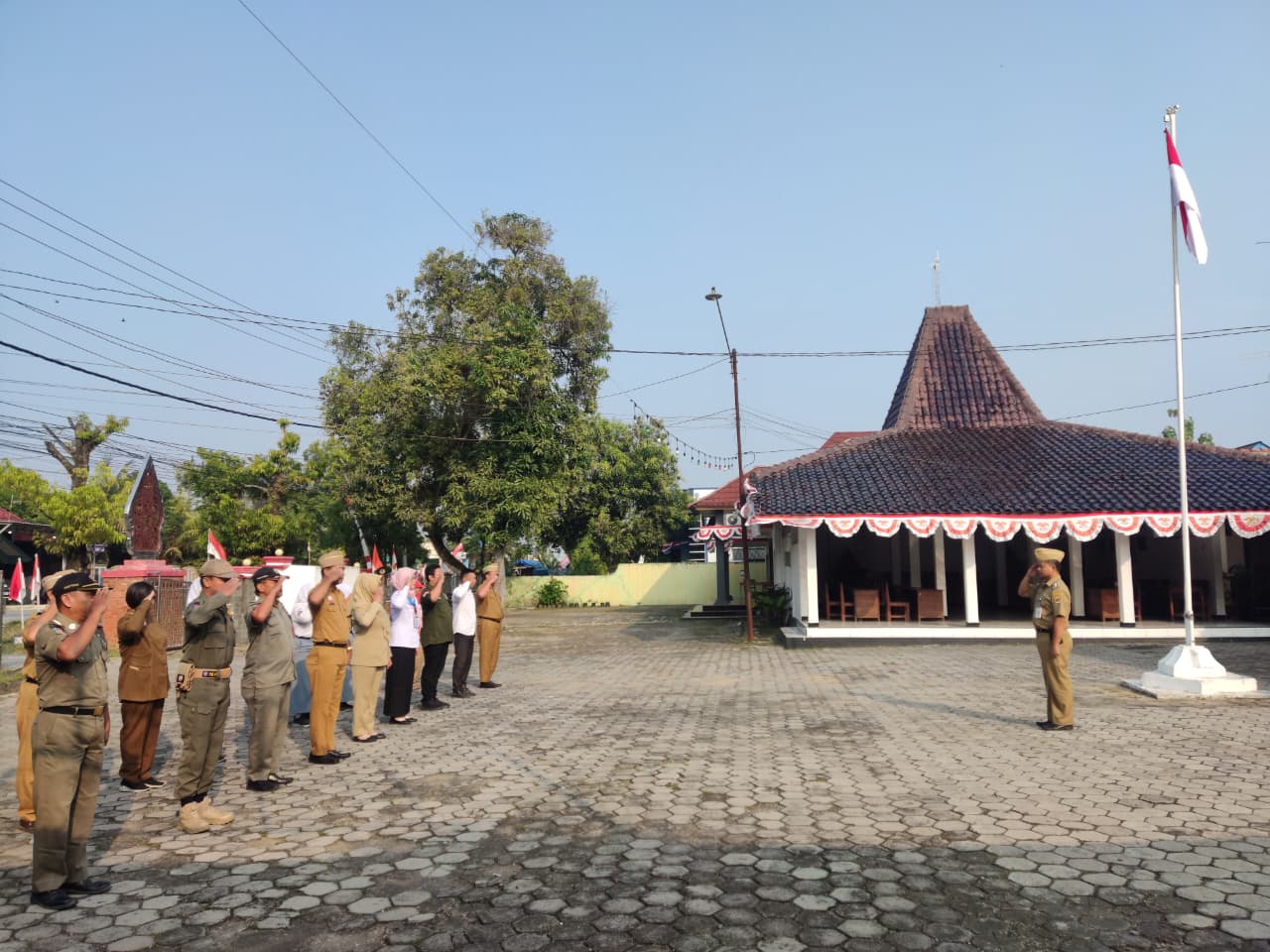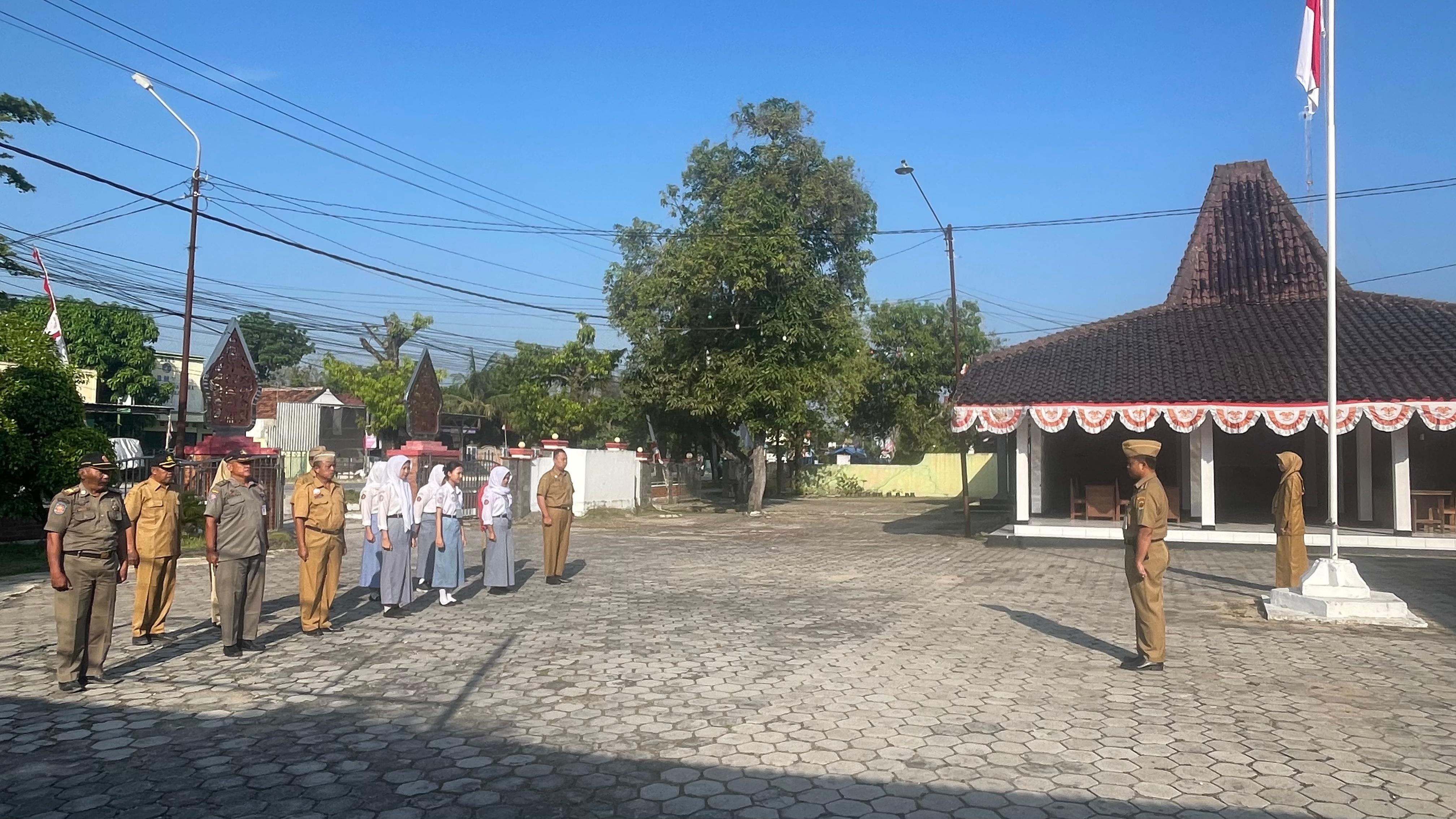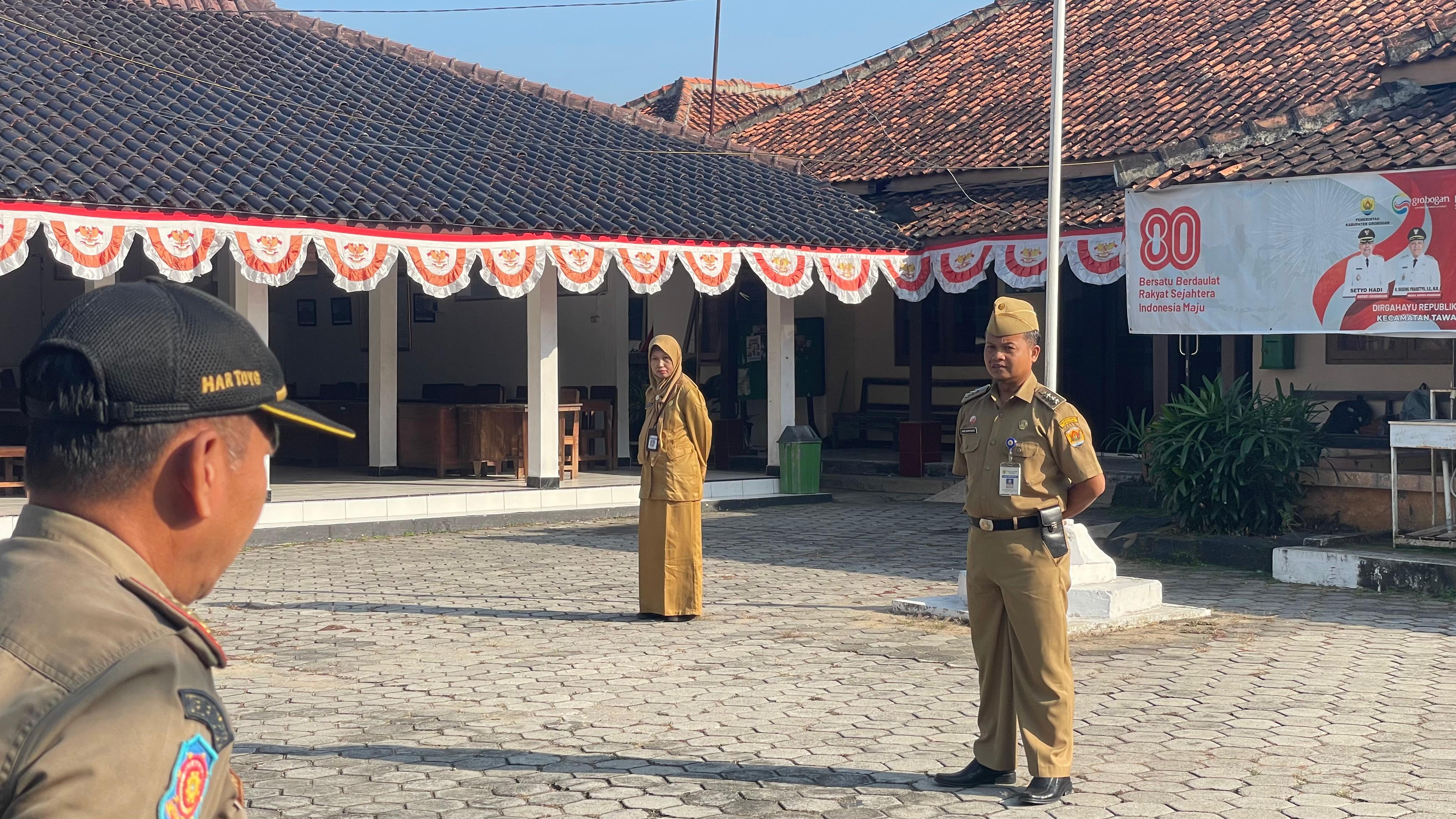 Senin, 1 September 2025. Apel pagi Karyawan-Karyawati Sekretariat dan Dinas Instansi Lingkungan Kantor Kecamatan Tawangharjo yang dipimpin oleh Camat Tawangarjo Bapak Joko Supriyanto, S. S.T.P., M.H. di Halaman Kecamatan Tawangharjo