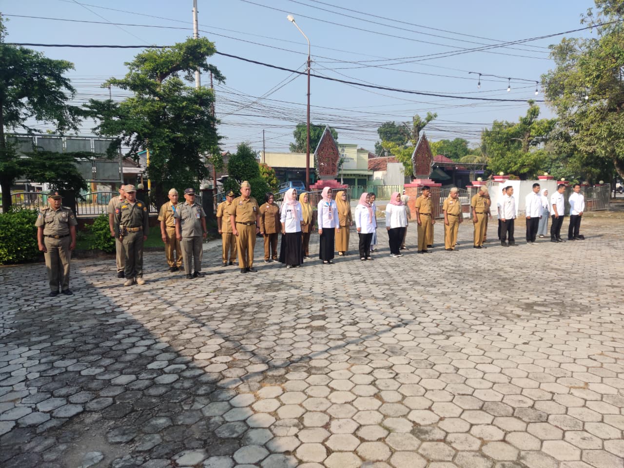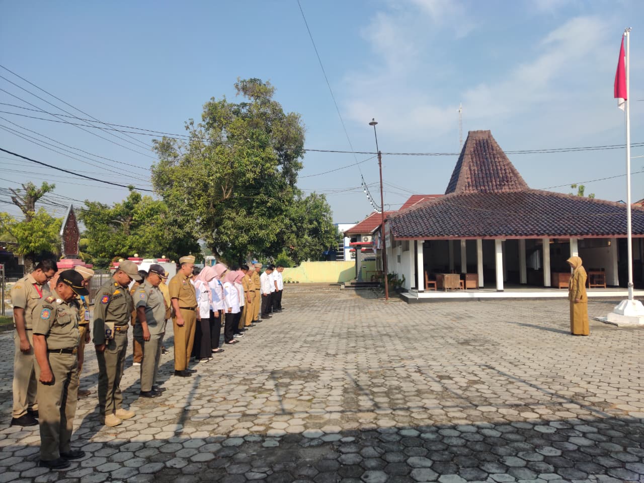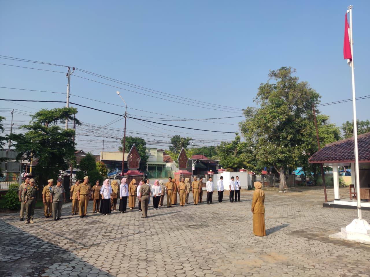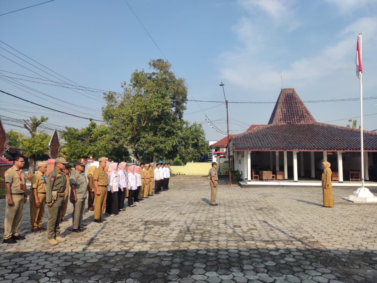 Senin, 6 Oktober 2025. Apel pagi Karyawan-Karyawati Sekretariat dan Dinas Instansi Lingkungan Kantor Kecamatan Tawangharjo yang dipimpin oleh Ibu Sekcam Sri Sugiwati, S.P., M.M. di Halaman Kecamatan Tawangharjo