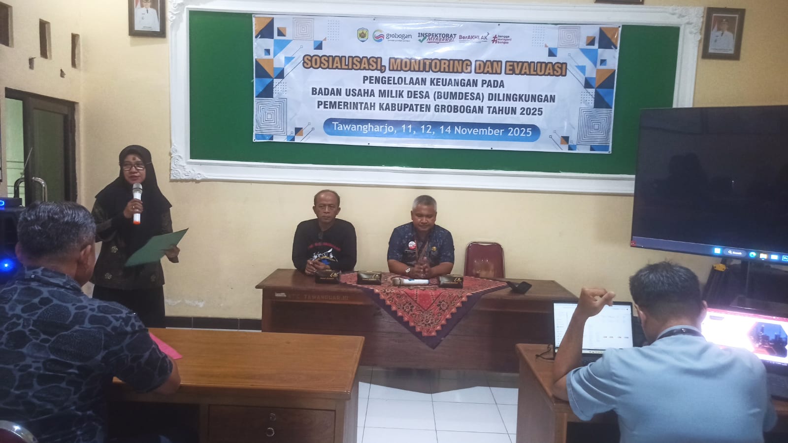 Jum'at, 14 November 2025. Sosialisasi, Monitoring dan Evaluasi Pengelolaan Keuangan pada Badan Usaha Milik Desa (BUMDESA) di Lingkungan Pemerintah Kabupaten Grobogan Tahun 2025 di Aula Kantor Kecamatan Tawangharjo