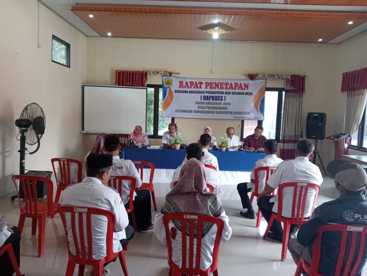 Rabu, 19 November 2025. Rapat Penetapan Rencana Anggaran Pendapatan dan Belanja Desa (RAPBDES) Tahun Anggaran 2026 Desa Pulongrambe di Aula Kantor Desa Pulongrambe Details Category: Uncategorised Published: Tuesday, 02 December 2025 20:05 Written by admin tawangharjo Hits: 62 Prev Next