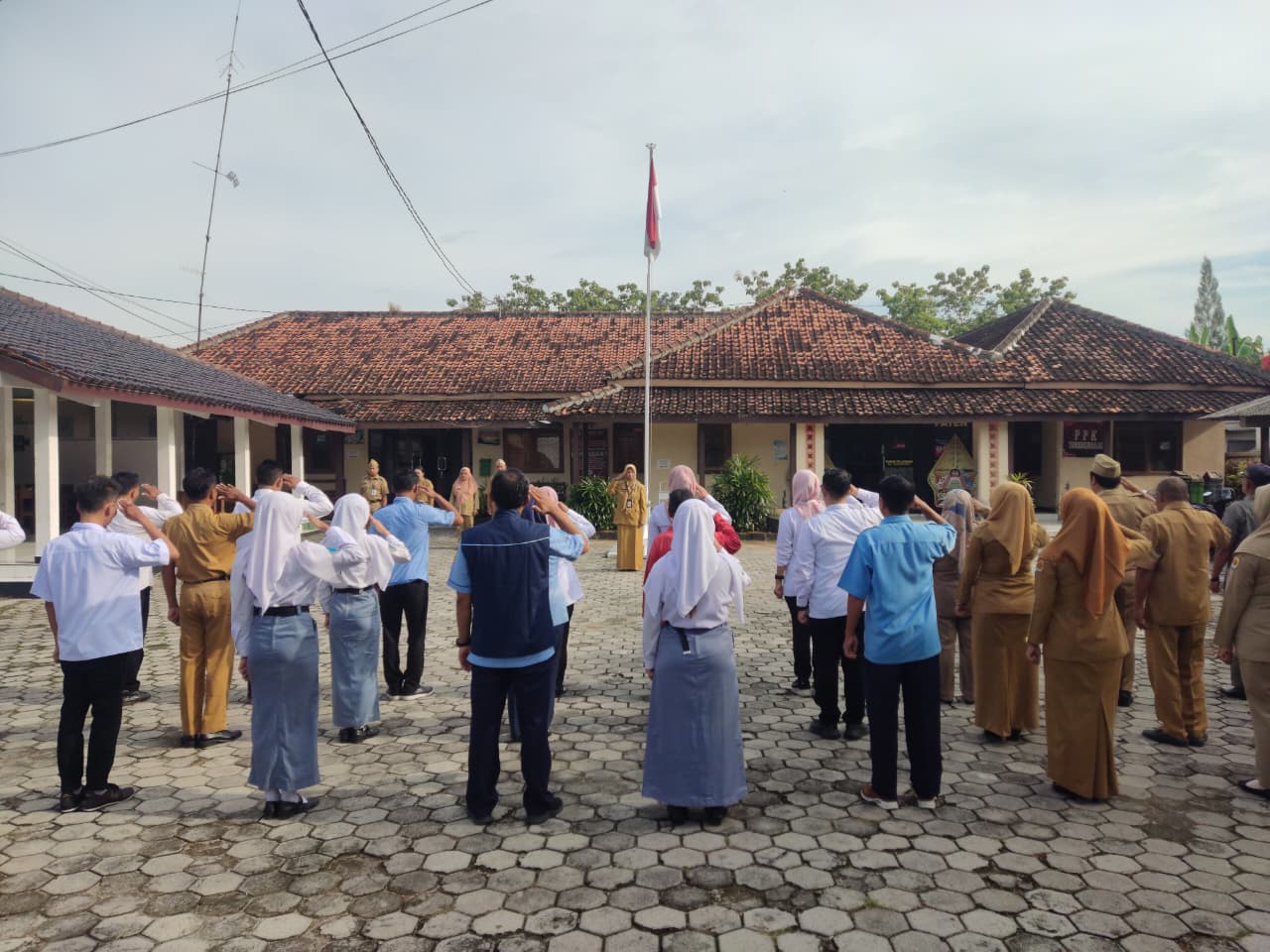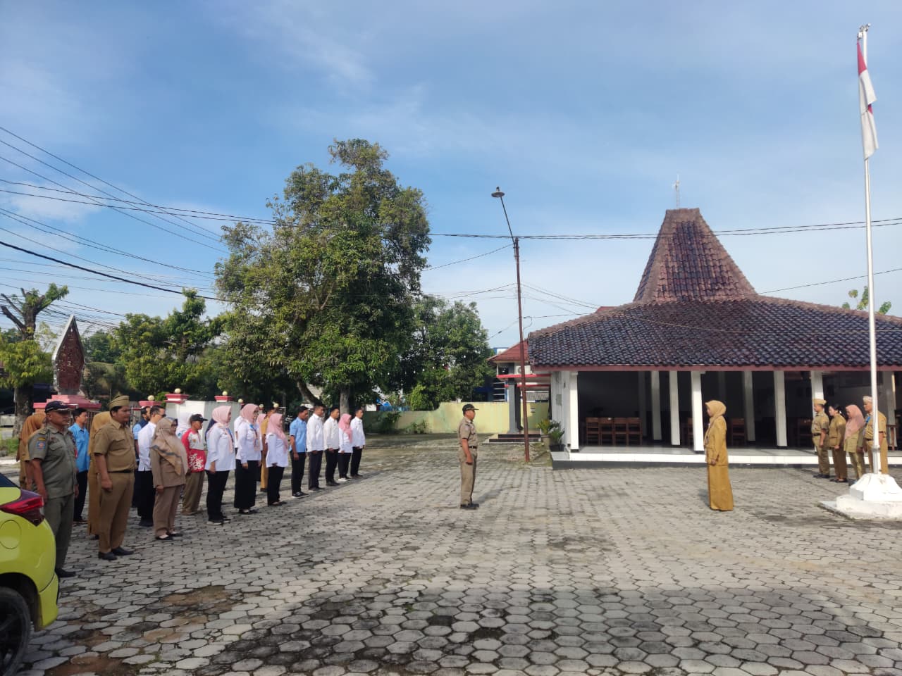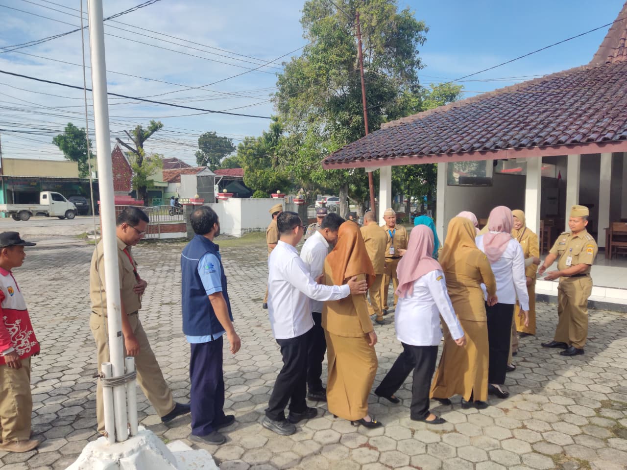 Senin, 8 Desember 2025. Apel pagi Karyawan-Karyawati Sekretariat dan Dinas Instansi Lingkungan Kantor Kecamatan Tawangharjo yang dipimpin oleh Ibu Sekcam Sri Sugiwati, S.P., M.M. di Halaman Kecamatan Tawangharjo